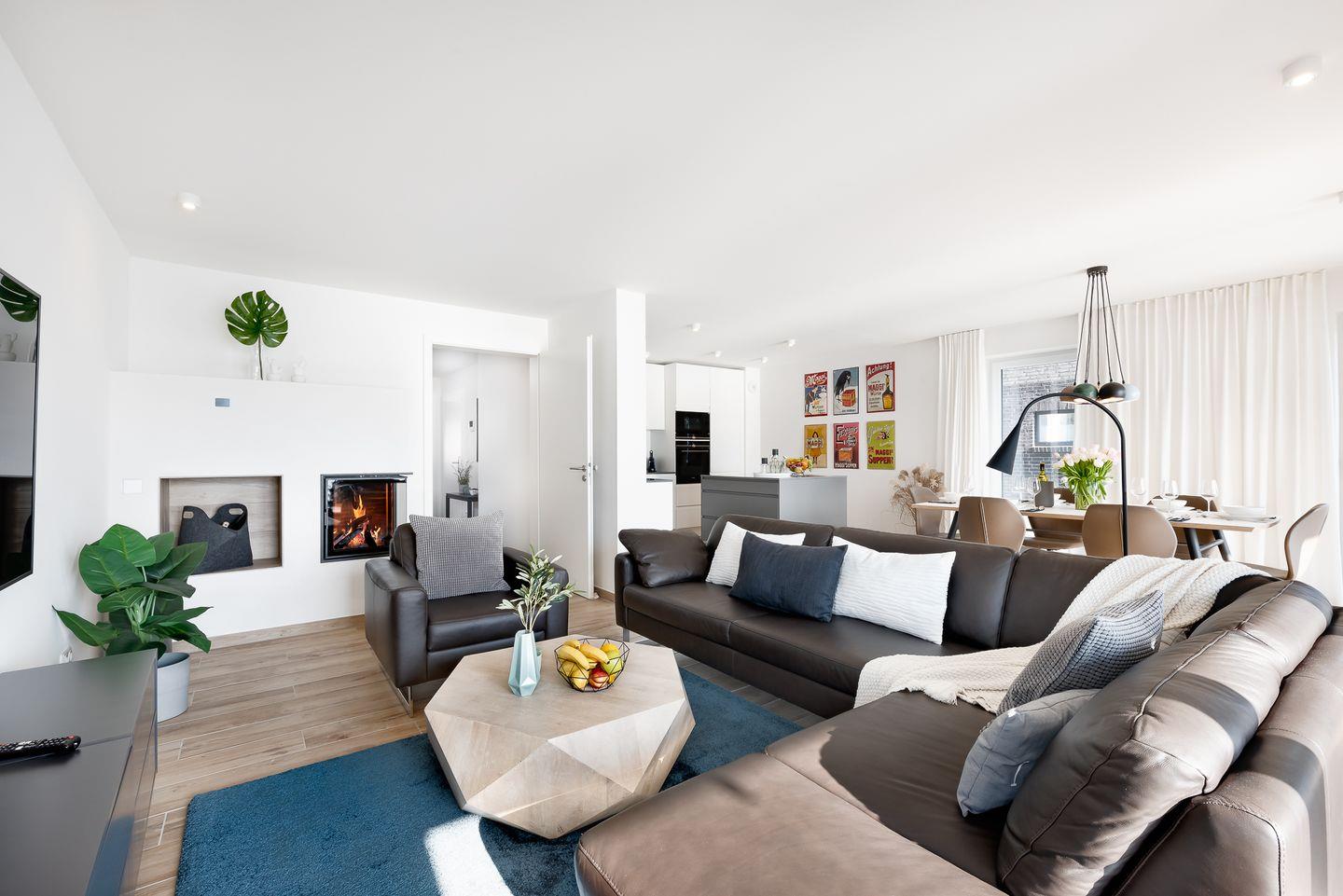 Moderne Maisonette-Ferienwohnung Sea 65 mit Sauna, Kamin und direktem Meerblick an der Ostsee.
