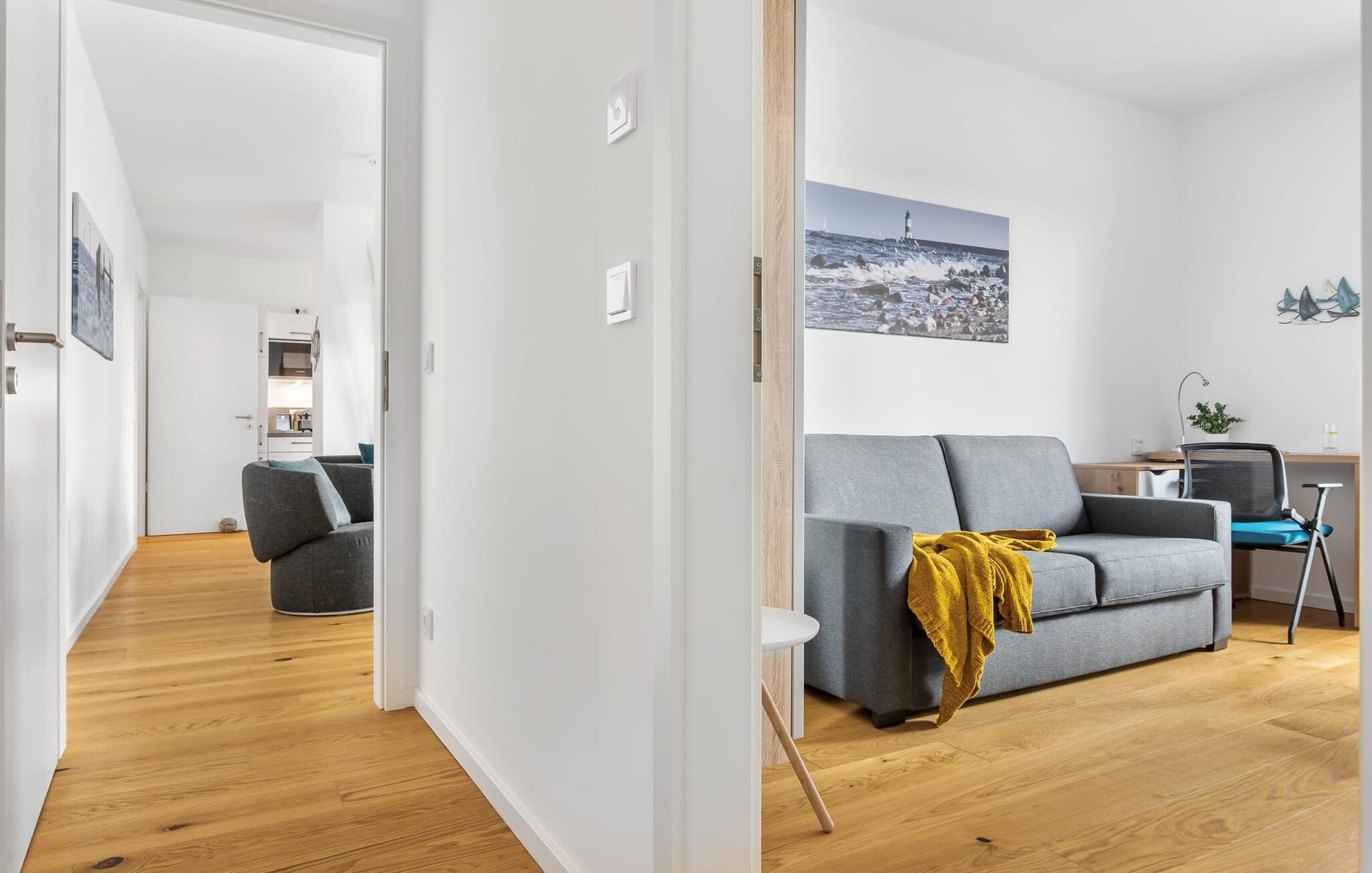 OSTSEETRÄUMCHEN überzeugt einerseits mit seiner traumhaften und ruhigen Lage, andererseits mit seinem anspruchsvollen und maritimen Ambiente, welches ganz im Zeichen der Gemütlichkeit steht. Mit seiner bodentiefen Fensterfront und dem angrenzenden großen Balkon ist der offene Wohn-/Essbereich das Herz der Wohnung. Hier eintreten und sich sofort zuhause fühlen ist eins. Aus dem Fenster oder vom Balkon aus über’s Meer blicken und chillen ist Entspannung und Erholung pur! Der Alltag entrückt immer mehr.