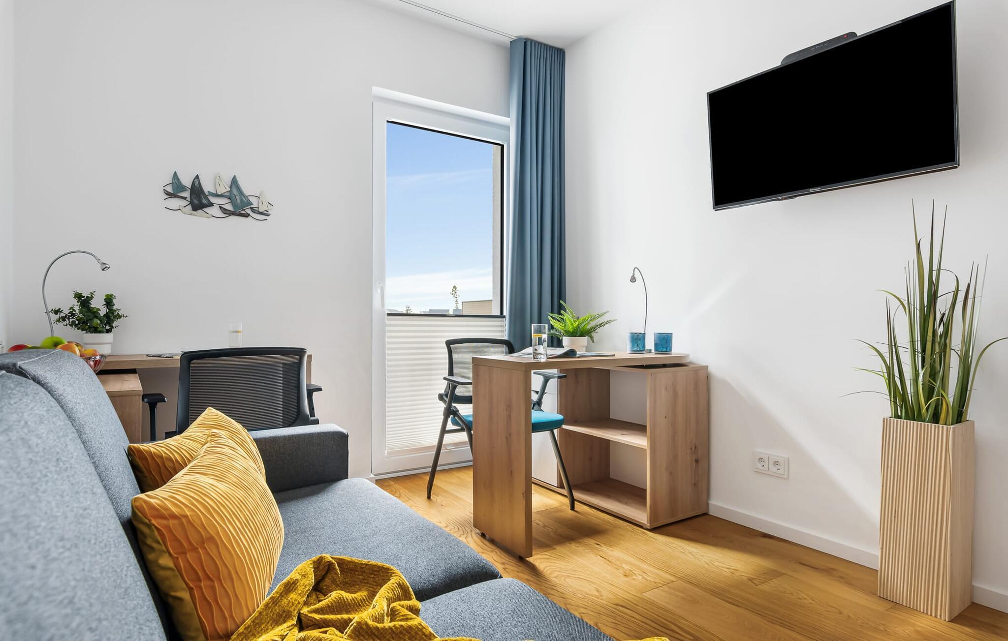 Bei vielleicht nicht ganz so gemütlichem Wetter sorgt der Kaminofen mit seinem prasselnden Feuer für weitere Behaglichkeit. Oder ihr macht es euch auf dem Sofa und den Designersesseln vor dem TV mit Telekom Home Entertainment Programm und Netflix gemütlich.