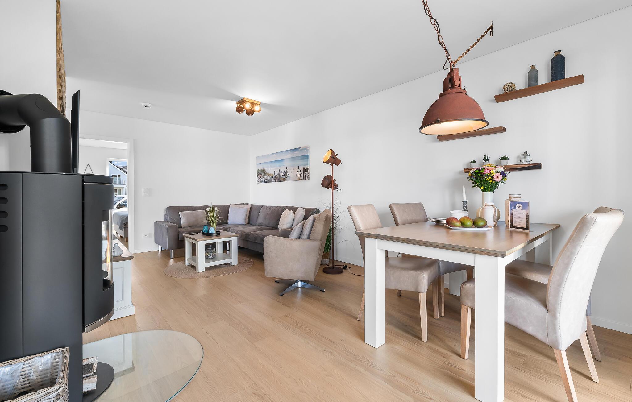 Beim Betreten der Wohnung begrüßt euch der helle und freundliche Wohnbereich mit seinen bodentiefen Fensterfronten. Lasst die Seele baumeln und genießt den Abend mit einem guten Buch und einem Glas Wein auf dem kuscheligen Sofa. An kalten Tagen sorgt der Kamin für wohlige Wärme. Erholung pur!