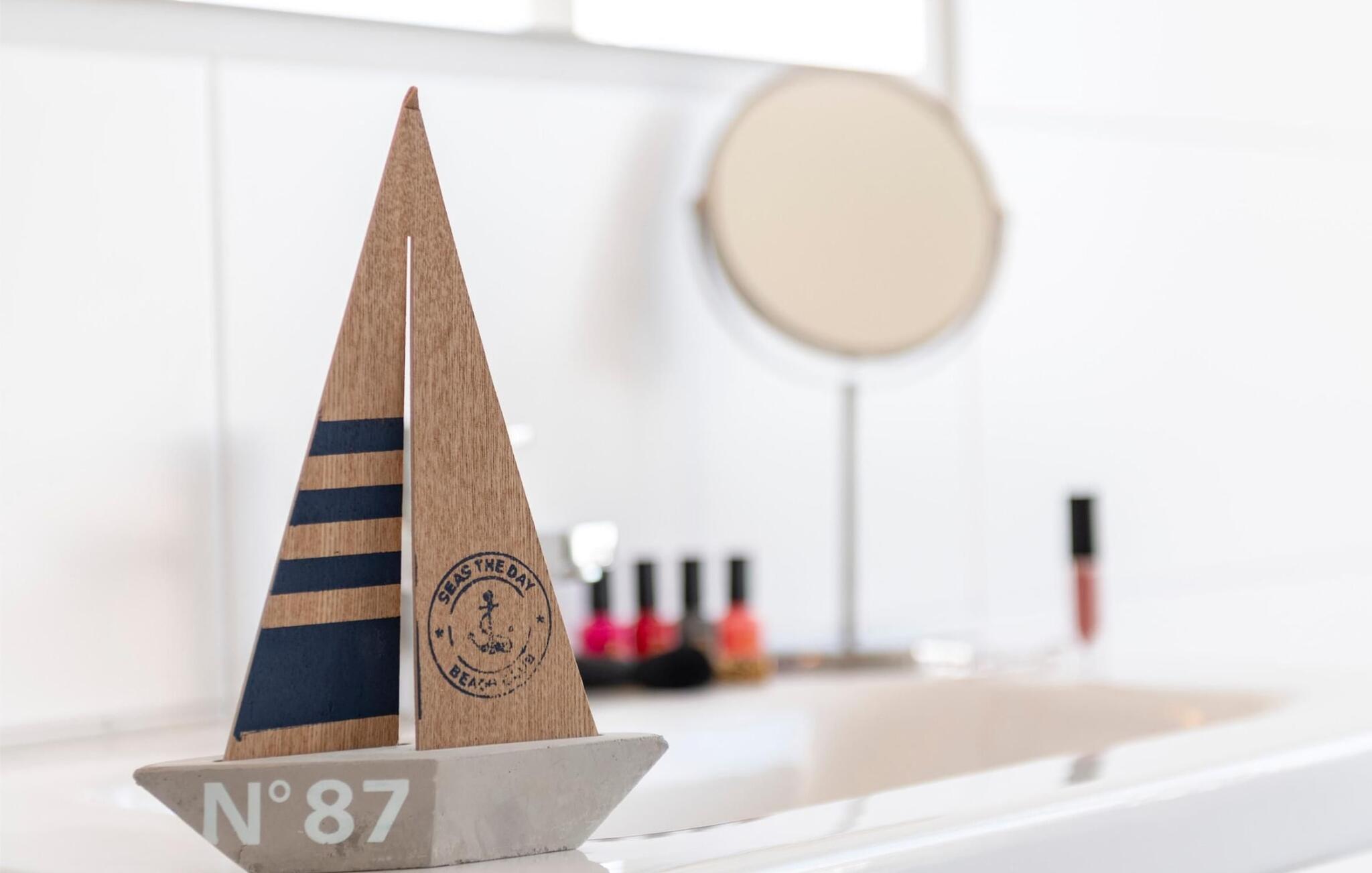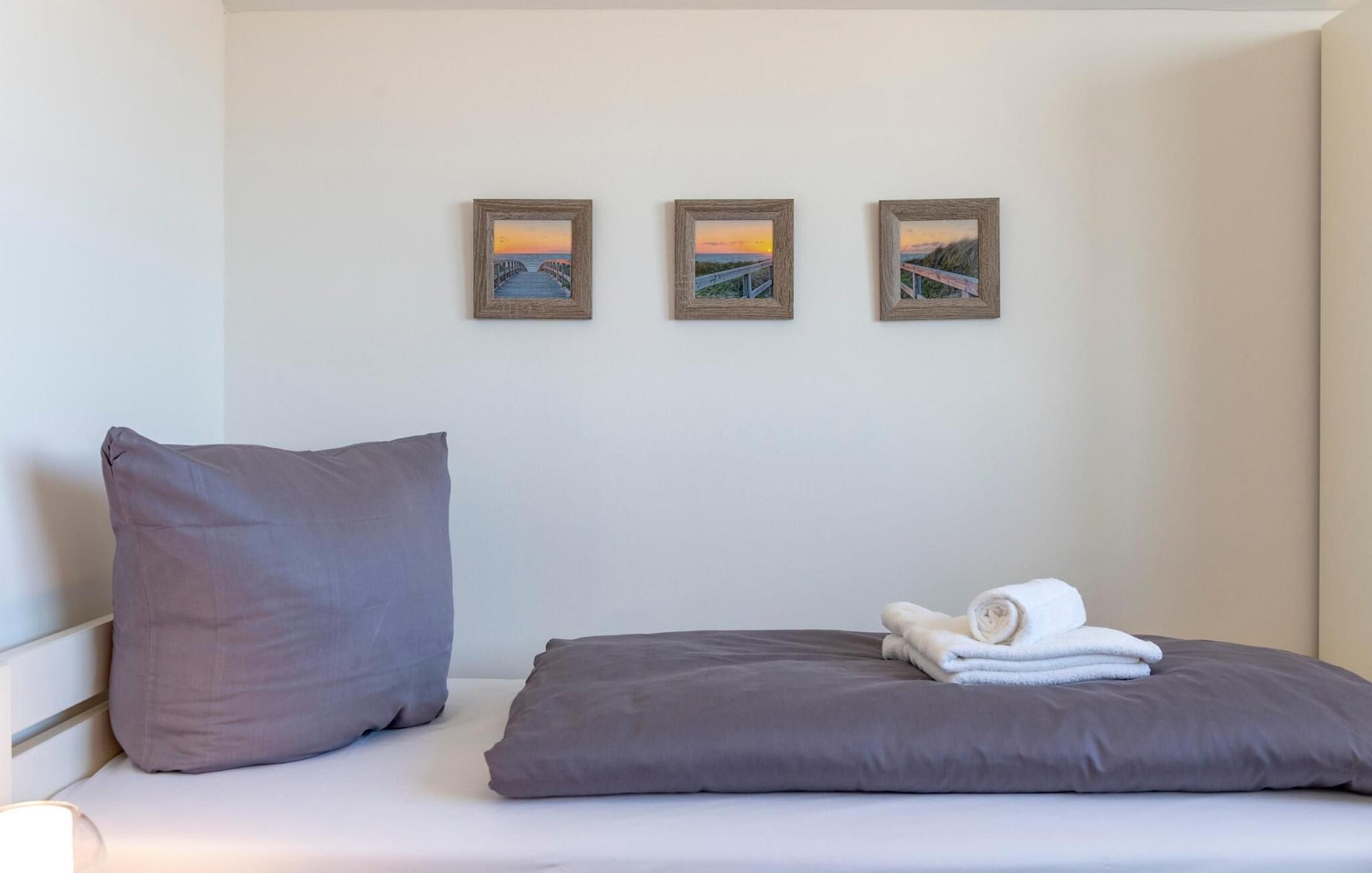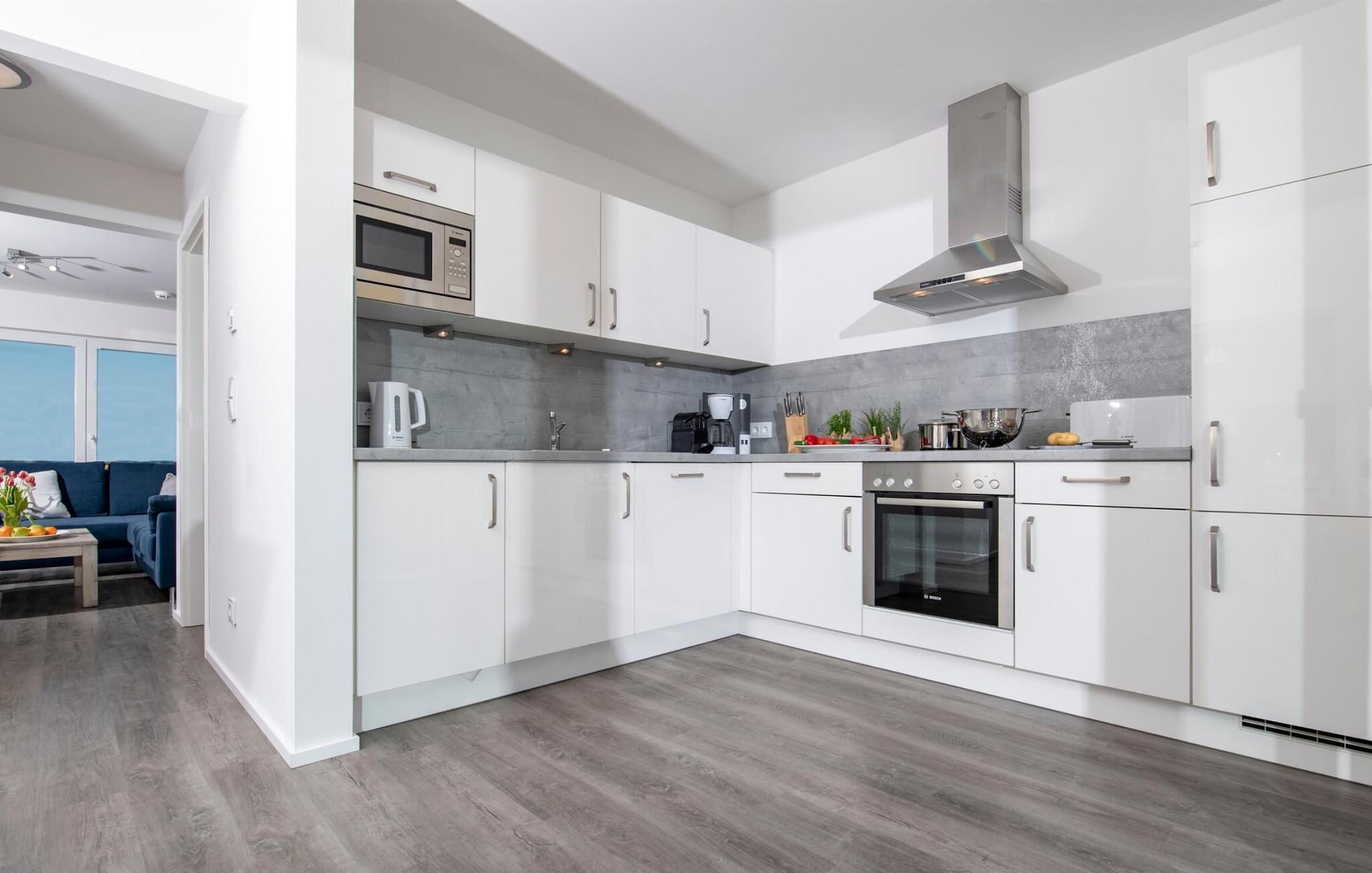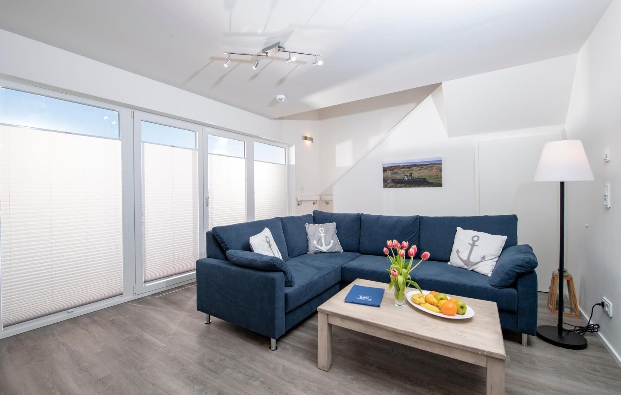 Bodentiefe Fensterfronten machen das Wasser zum Greifen nah und schaffen einen lichtdurchfluteten Wohnraum. Frische Energie tanken lässt es sich bei einem Frühstück auf der gen Osten ausgerichteten Terrasse. Wer früh genug ausgeschlafen hat, kann hier traumhafte Sonnenaufgänge beobachten. Nach einem ausgiebigen Strandtag lädt die gen Westen ausgerichtete Terrasse mit Sonnenuntergangsgarantie zum romantischen Candle-Light-Dinner oder einem geselligen Grillabend ein. Hafenkino ist hierbei garantiert.