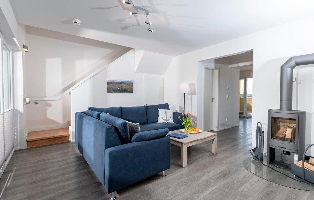 Das Ferienobjekt Ostwind ist für vier Personen ausgerichtet. Wohn- und Essbereich befinden sich auf erster Ebene, während die beiden Schlafzimmer eine