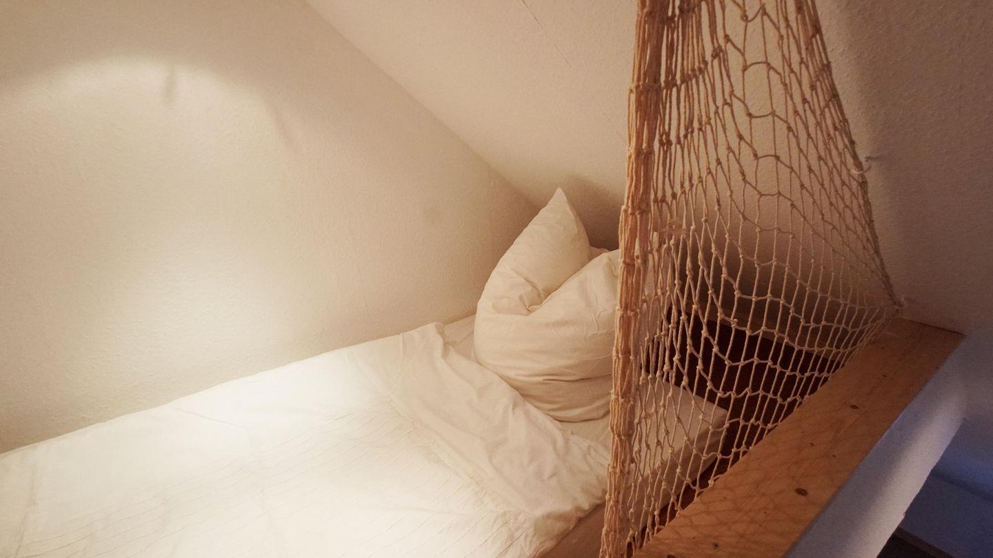 Für unseren kleinen Gäste halten wir eine Schlafkoje im Obergeschoss bereit. Auf etwa 2,4m Höhe haben unsere jüngsten Gäste einen wunderbaren Ausblick herab auf das Obergeschoss und können sich mit Steckdose (Kindersicherung vorhanden!) und eigenem Lichtschalter ganz in Ihrer Koje zurückziehen. Der Terrassenbereich ist komplett eingefriedet und bietet genügend Platz um auch mal mit dem Bobbycar Gas zu geben. In unmittelbarer Nähe (ca. 20m) finden Sie außerdem einen kleinen Spielplatz zum Toben. In Westerbergen (max. 15 Minuten Fahrzeit entfernt) bietet sich ein idealer Strand für die Kleinen. In einer kleinen Bucht können Sie bis zu 200m weit durch das Meer spazieren und dabei wird das Wasser nie tiefer als bis zu den Knien.