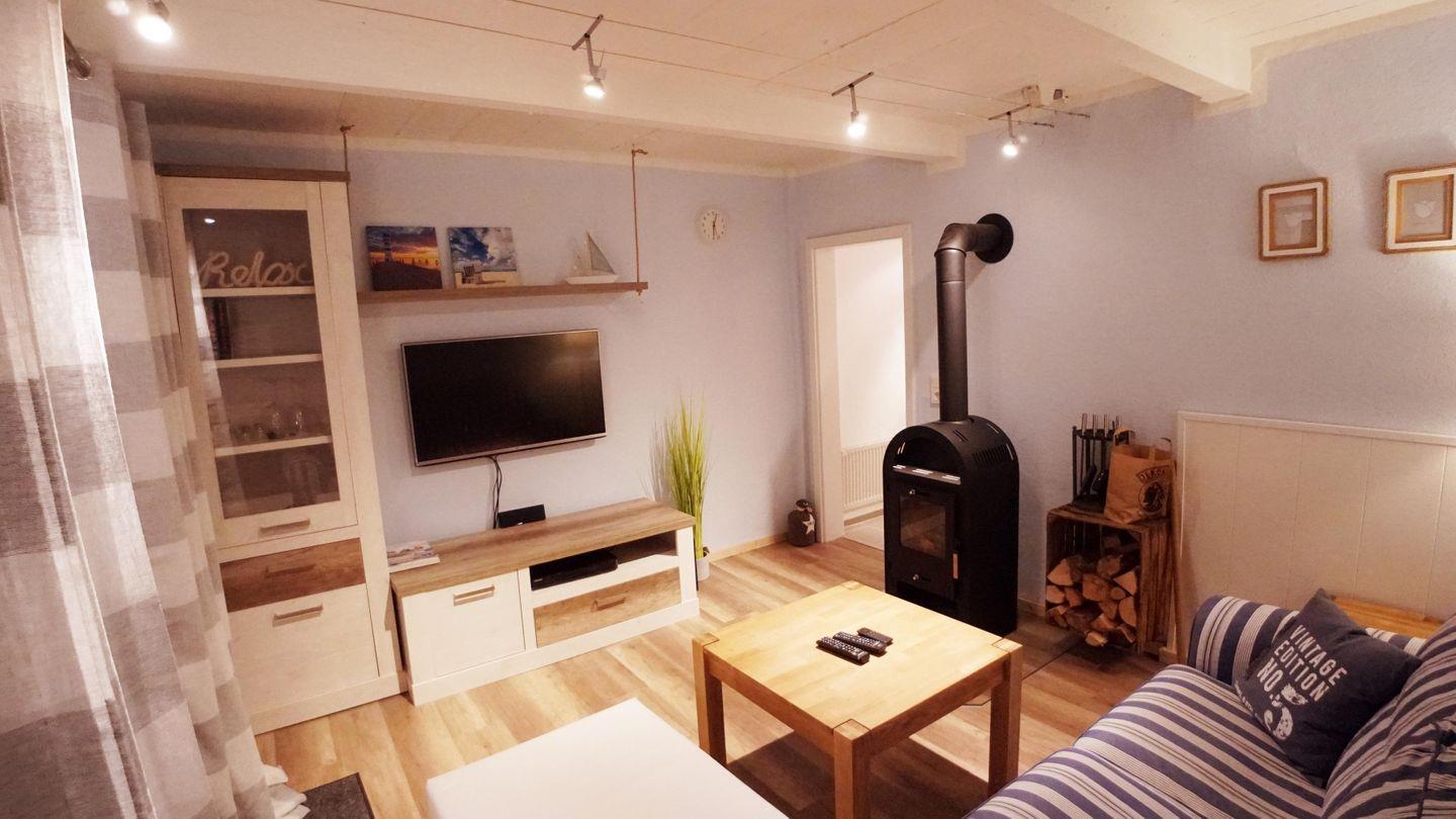Wir freuen uns sehr über Ihr Interesse an unserem kleinen Feriendomizil auf Fehmarn in Niendorf, ganz in der Nähe der Inselhauptstadt Burg. Unsere Feerjenkate ist frisch renoviert und verfügt über insgesamt zwei Zimmer (Wohnzimmer im EG + Schlafzimmer im OG), eine Durchgangsküche mit Essbereich und ein Duschbad. Im Außenbereich steht Ihnen eine kleine Rasenfläche, ein Parkplatz auf dem Grundstück und eine eingefriedete Sonnenterrasse zur Verfügung. Das Wohnzimmer ist mit einem ausziehbaren Schlafsofa (zwei Personen), einem LED TV (mit Satanschluss und HD+) und einem Kamin ausgestattet.