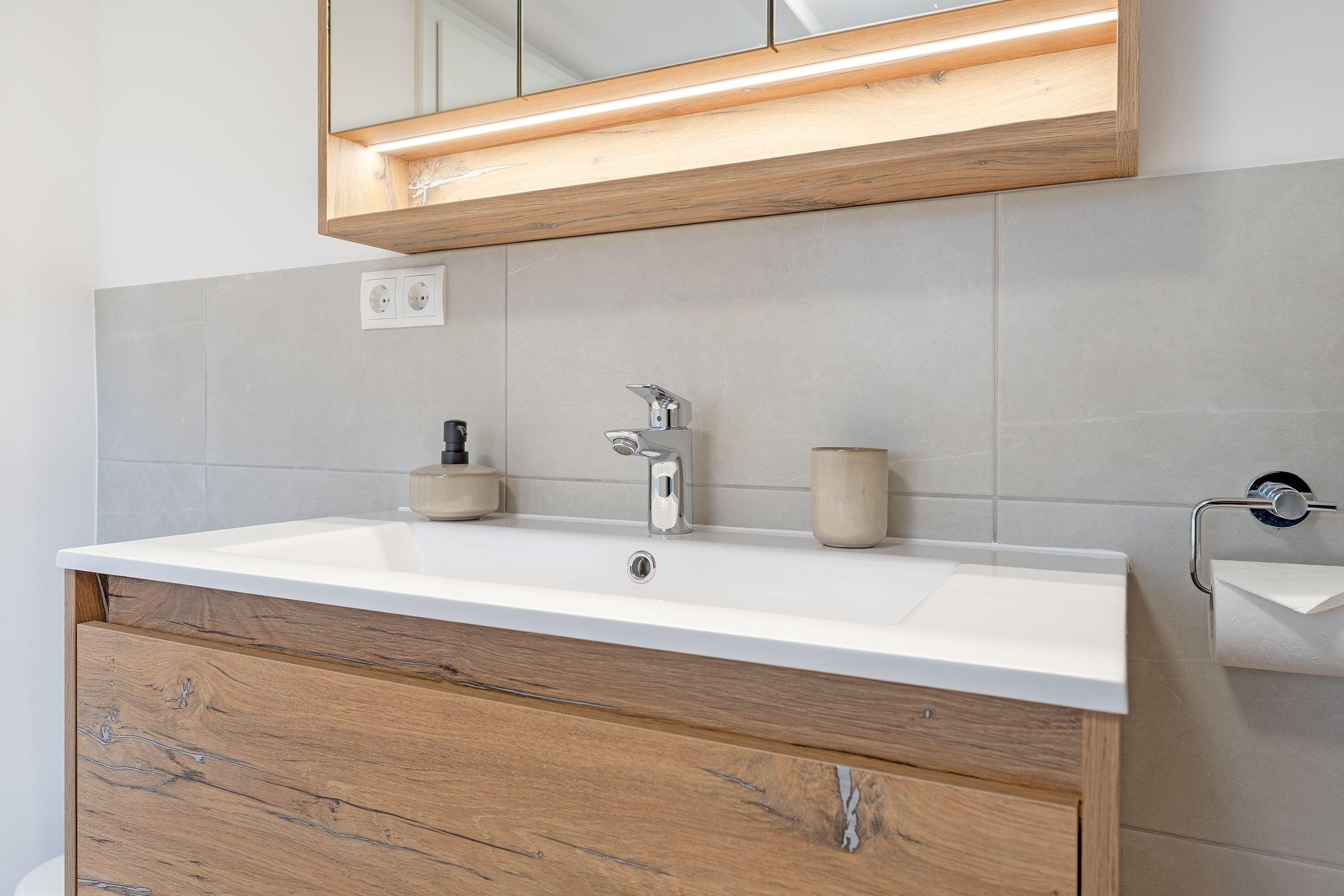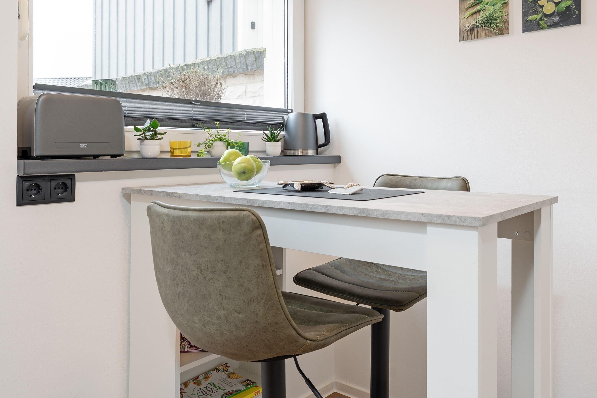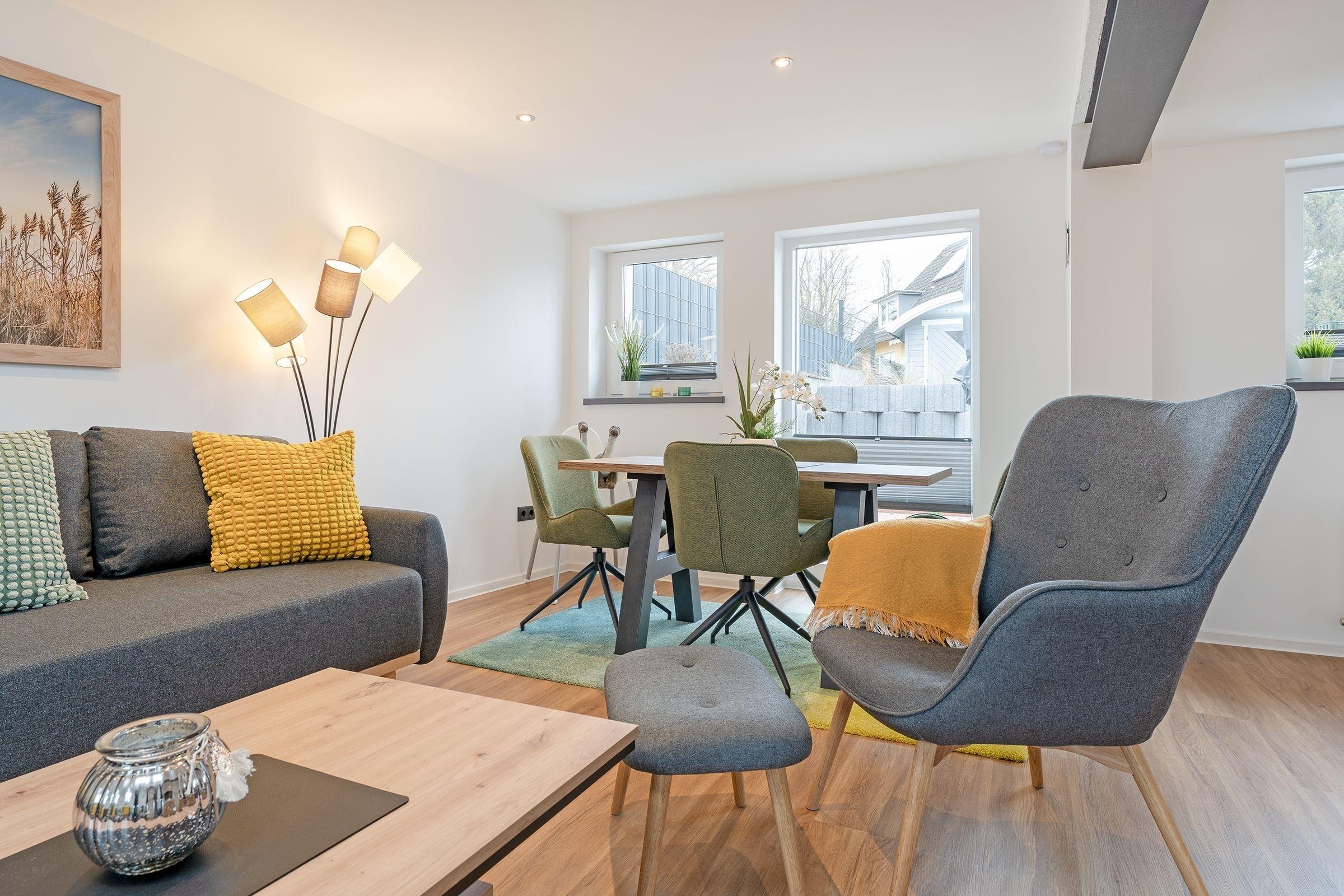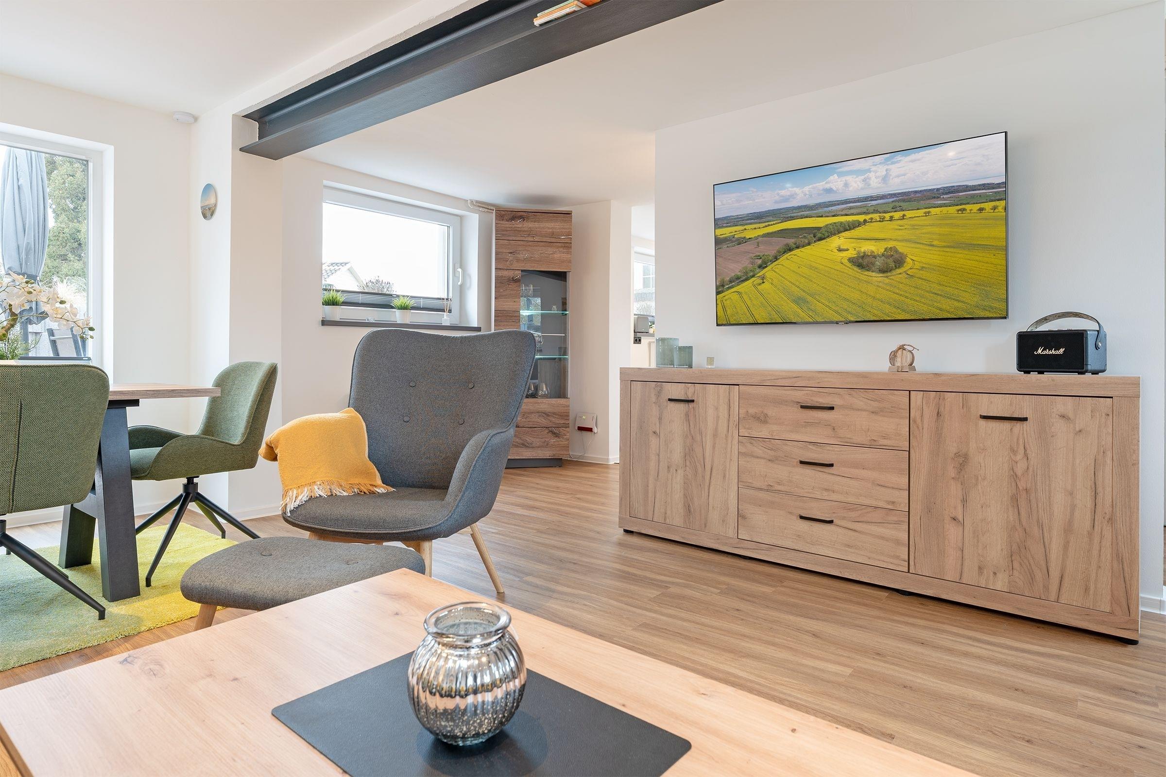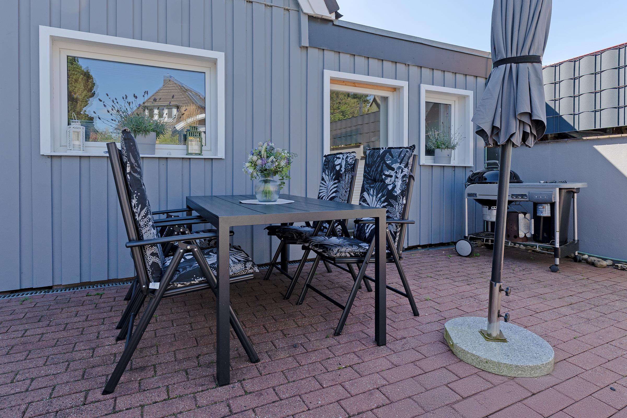 Willkommen in Ihrem Feriendomizil an der schönen Ostseeküste Schleswig-Holsteins! Dieses geschmackvoll eingerichtete Ferienhaus bietet Ihnen eine ideale Ausgangslage für erholsame Urlaubstage am Meer. Genießen Sie die frische Meeresbrise auf der Terrasse, die nach Nordwesten ausgerichtet ist und mit Gartenmöbeln und Grill ausgestattet ist – perfekt für entspannte Stunden an der frischen Luft. Der individuell gestaltete Wohnbereich empfängt Sie mit einer gemütlichen Atmosphäre. Kuschelige Sitzmöbel laden zum Entspannen ein. Das Sofa kann mit wenigen Handgriffen in einen Schlafplatz für zwei Personen (ca. 140x200cm) verwandelt werden. Die offene Küche grenzt direkt an den Wohnbereich und bietet Ihnen alles, was Sie für die Zubereitung köstlicher Mahlzeiten benötigen. Die moderne, zeitlose Ausstattung wird Sie begeistern. Das kuschelige Schlafzimmer erreichen Sie über eine kleine Treppe und sorgt mit seinen Dachschrägen für Behaglichkeit. Hier können Sie in einem komfortablen Doppelbett (2x 90x200cm) erholsame Nächte verbringen. Das großzügige Tageslichtbad im Erdgeschoss ist mit einer großen Dusche ausgestattet und bietet den Komfort, den man sich im Urlaub wünscht.