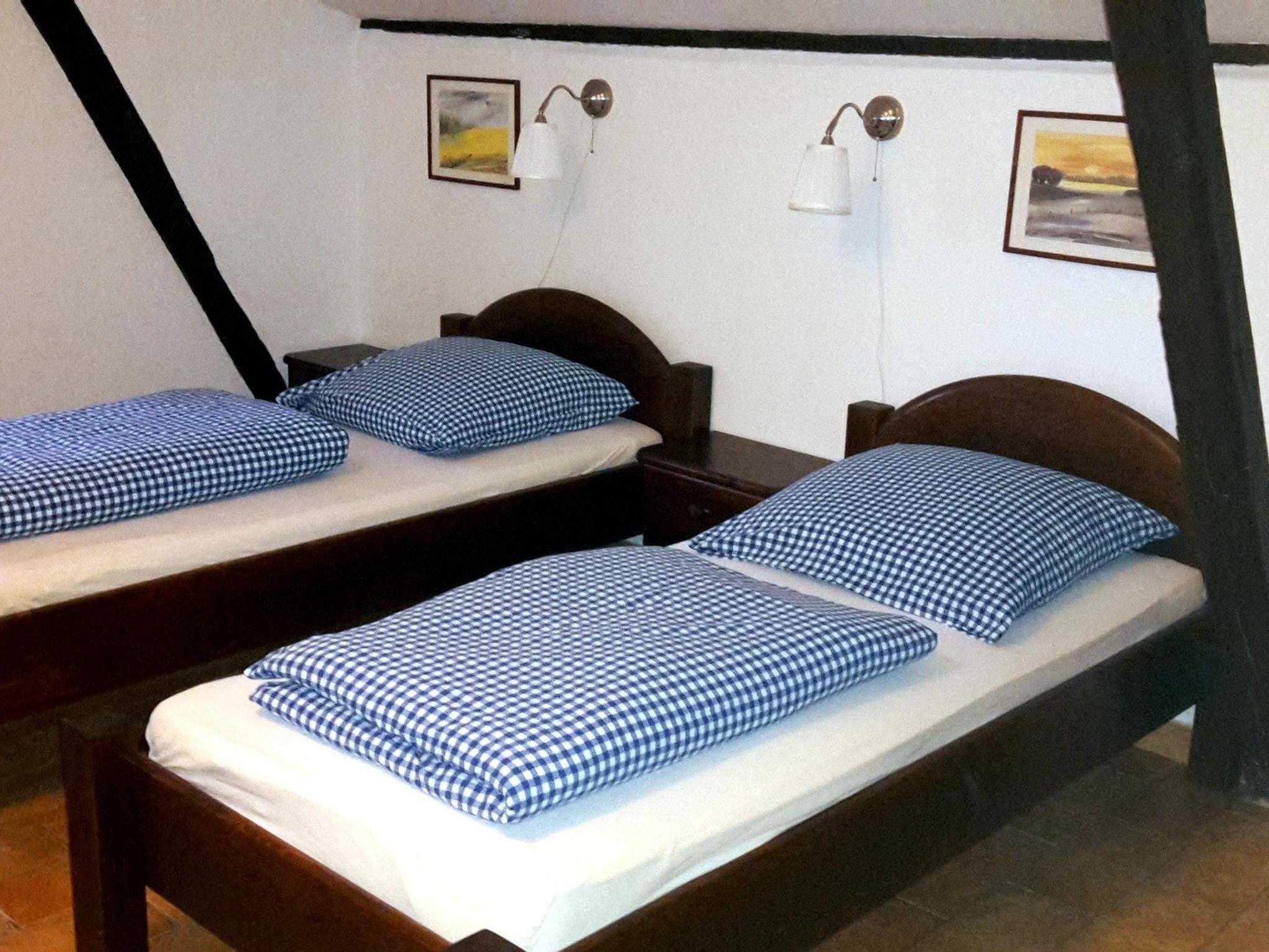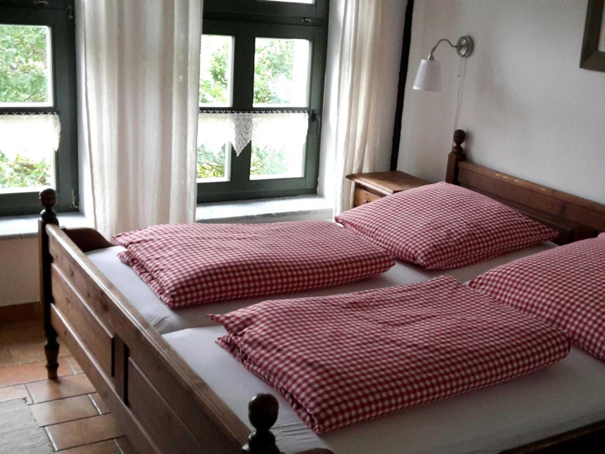 In den Wohnungen schlafen Sie in ein, zwei oder drei Schlafzimmern, in Einzel- oder Doppelbetten. Die Fußböden in den Wohnungen bestehen aus Parkettboden oder Fliesen. Gern wird auch das ganze Objekt mit 7 Ferienwohnungen für Familien-, Freundeskreis- oder Jahrgangstreffen angemietet. Pro Wohnung können wir bis 2, 4, 5 oder 6 Personen aufnehmen. Somit sind 29 Schlafmöglichkeiten gegeben. Die Bettwäsche ist bereits für Sie aufgezogen, Handtücher können auf Wunsch dazu gebucht werden.