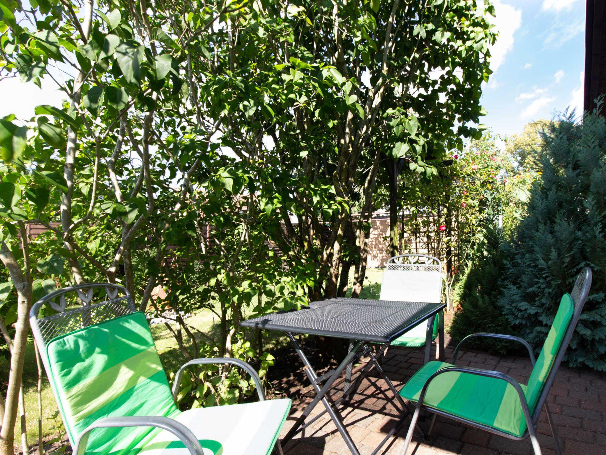Die Unterkunft hat einen separaten Eingang. Vom Flur gelangen Sie in den offenen Wohn- und Essbereich mit Zugang zur Terrasse, in das Tageslichtbad sowie in das Schlafzimmer. Im Wohnbereich finden Sie eine gemütliche Sitzecke (Aufbettung auf der Couch für die 3. Person) und einen LCD-TV. Die Küchenzeile ist ausgestattet mit einem Kühlschrank, 2 Platten-Herd, einer Dunstabzugshaube, einer Mikrowelle, einer Kaffeemaschine und einem Wasserkocher. Ein separater Esstisch lädt zum Frühstücken ein. Das Schlafzimmer besitzt ein bequemes Doppelbett (durchgehende Matratze) sowie einen Kleiderschrank. Das Tageslichtbad mit Dusche und WC runden das geschmackvoll eingerichtete Ferienhaus ab. Die sonnige Terrasse mit Blick in den Garten befindet sich auf der Rückseite des Ferienhauses (Zugang vom Wohnraum). Ihr Auto können Sie auf der Zufahrt parken und Ihre Fahrräder finden unter dem Carport Ihren Platz.