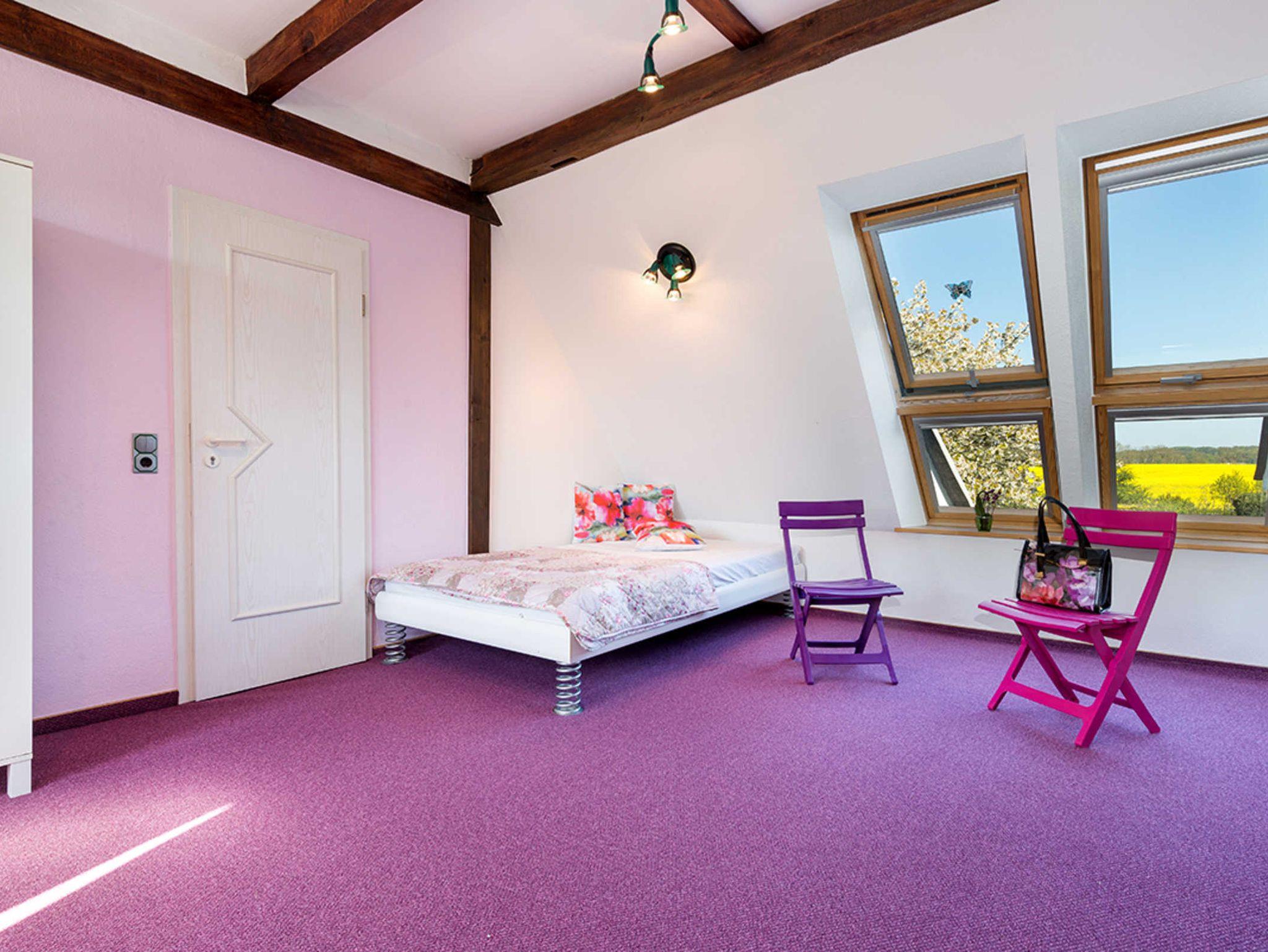 Die Ferienwohnung befindet sich im OG des Haupthauses, hat einen separaten Zugang über eine Wendeltreppe und einen Balkon. Sie liegt gemeinsam mit 3 weiteren Ferienquartieren auf einem 3000 m² liebevoll angelegten Gartengrundstück, auf dem für jeden Gast ausreichendprivater Platz vorhanden ist.