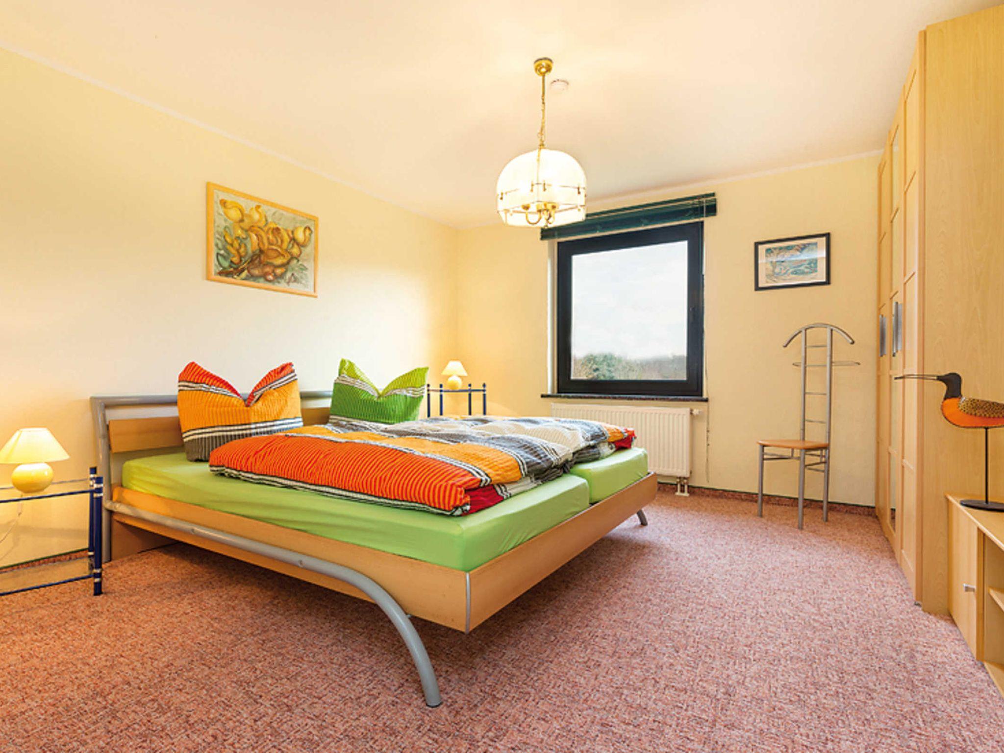 geräumiges Schlafzimmer mit Doppelbett (1,80 x 2,00 m), großem Schrank, Stühlen und Nachtschränken, Kofferablage, Möglichkeit der Aufstellung eines Kinderbettes, 2. Schlafzimmer mit 2 zusammenschiebbaren Schlafsofas (0,70 x 1,80)
