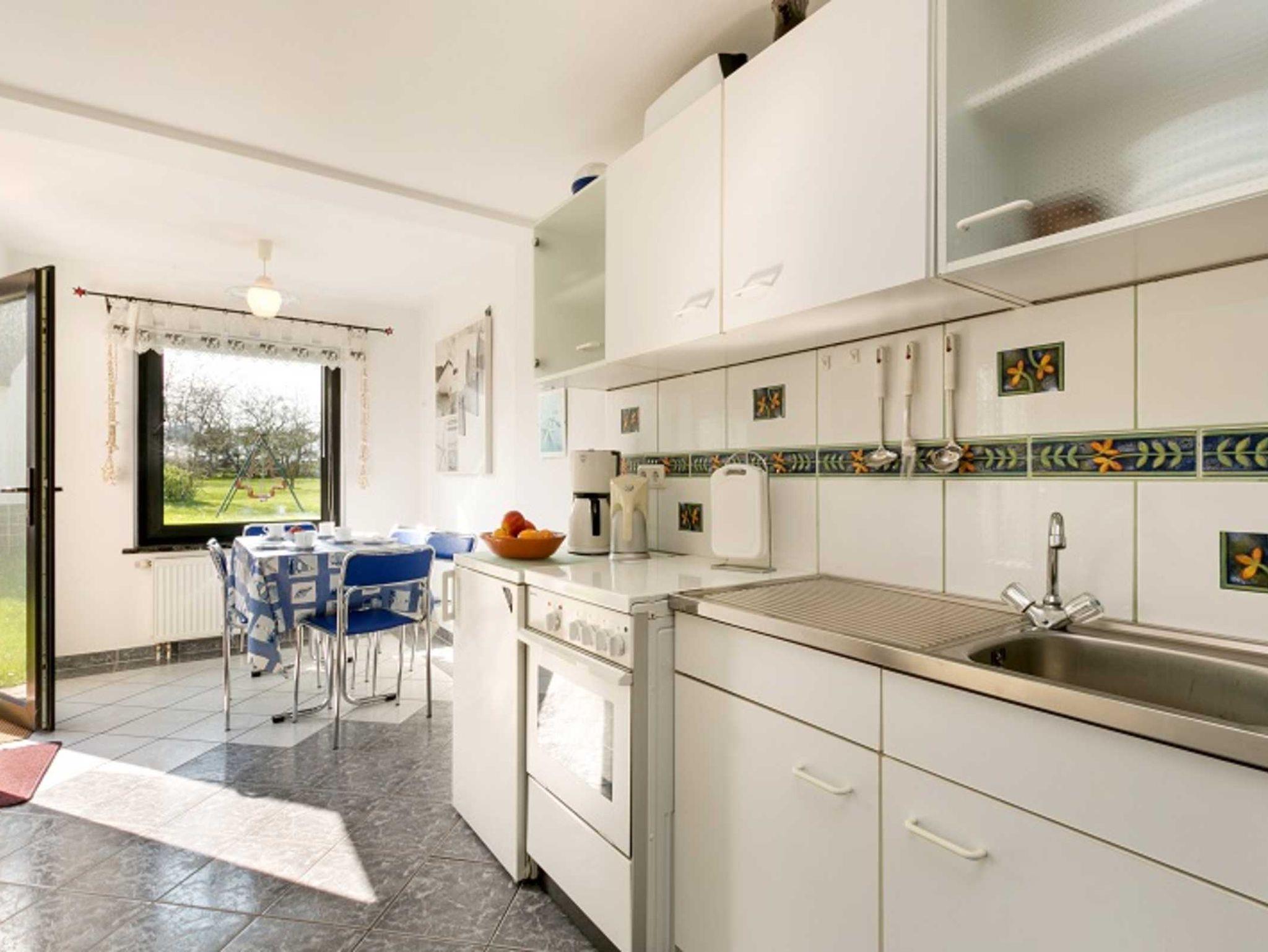 geräumige Küche, Tisch mit 6 Plätzen, E-Herd/Backofen, Geschirrspüler, Microwelle, Kühlschrank/Tiefkühlfach, Kaffeemaschine, Toaster