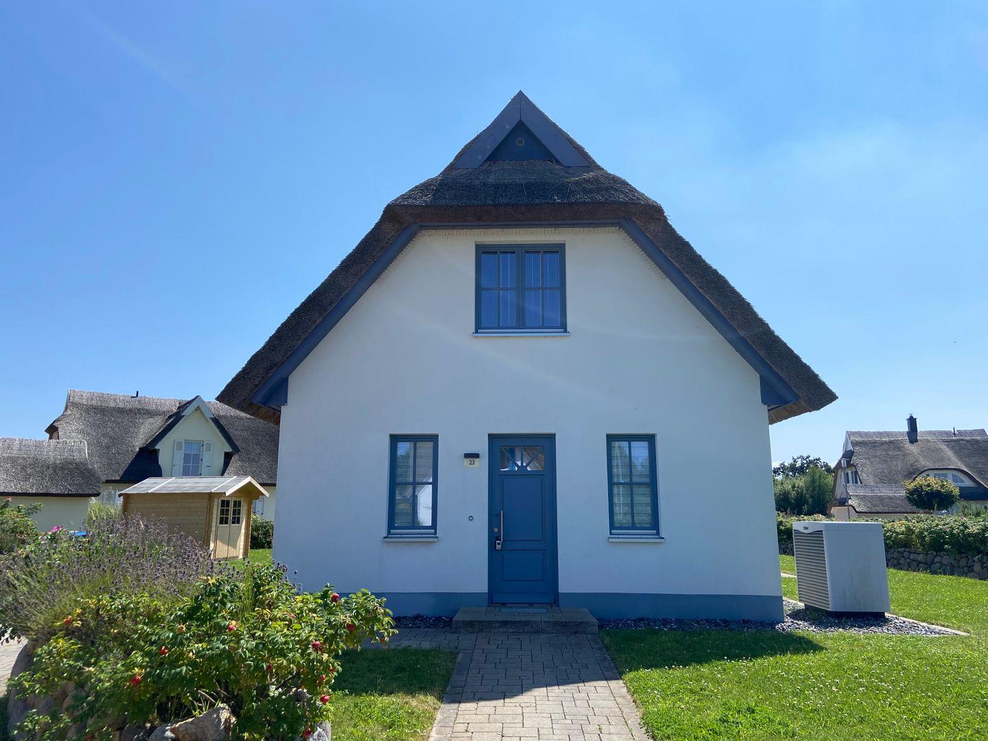 Modernes Reetdachhaus mit Sauna, Kamin und großem Garten nahe der Boddenküste.