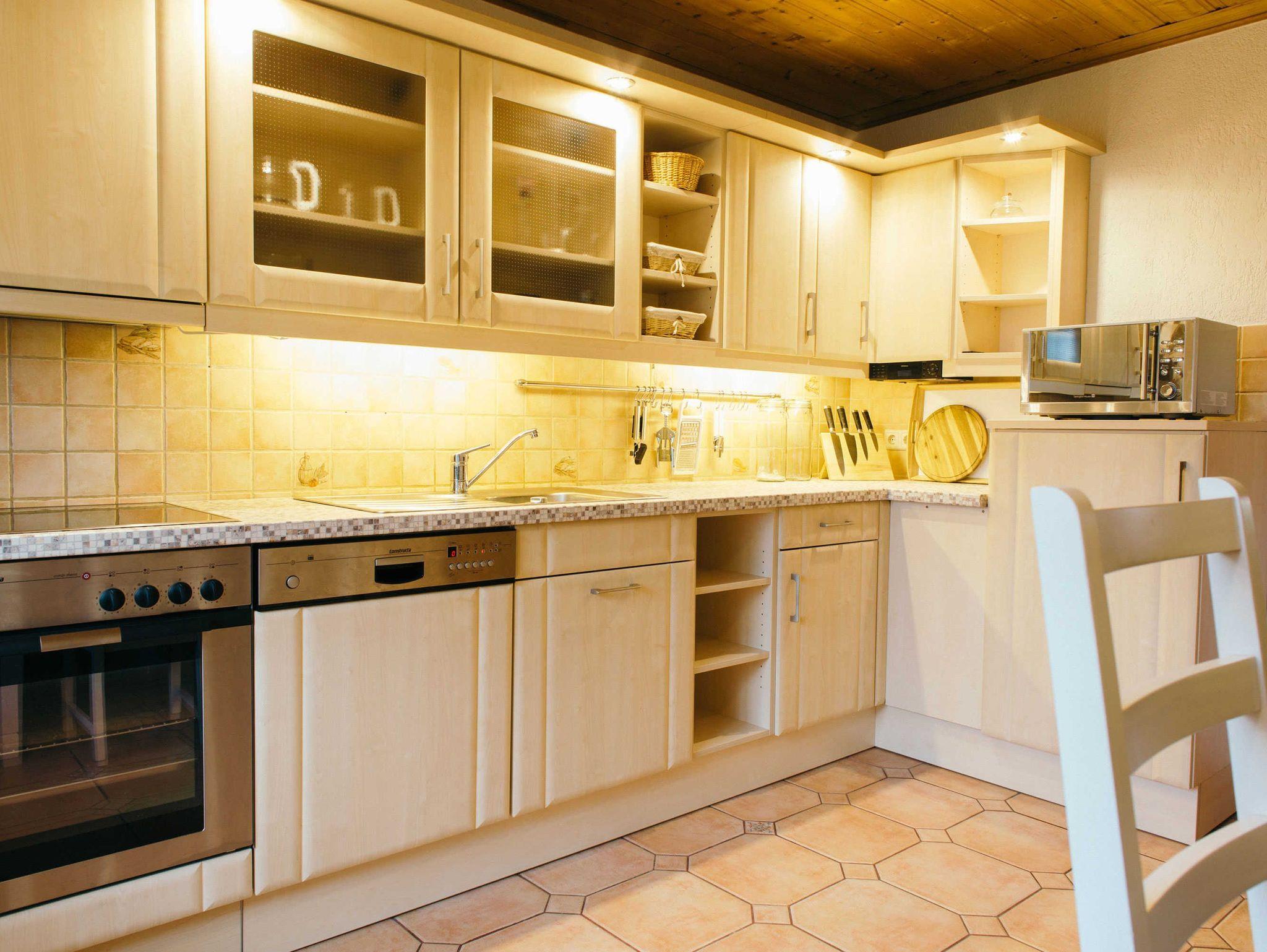 Unser Ferienhaus wurde 2017 komplett modernisiert, ist ca.135 qm groß, hat Platz für maximal 8 Erwachsene und ein Kind im Kinderreisebett und wurde modern und liebevoll eingerichtet. Im Wohnraum befinden sich eine bequeme Schlafcouch mit Tisch und ein modernes Flachbild-TV-Gerät. Auf der Schlafcouch können 2 Gäste als Aufbettung übernachten. Die drei Schlafzimmer sind mit Doppelbetten, Nachtischen und Kleiderschrank ausgestattet, ein Schlafzimmer hat auch ein Flachbild-TV. Die separate Küche ist mit Backofen, Herd, Geschirrspüler, Wasserkocher, Kaffeemaschine, Toaster, Mikrowelle und Kühlschrank ausgestattet. Hier steht auch ein Esstisch mit Stühlen. Bei Ihrer Anreise liegen frische Handtücher bereit und die Betten sind selbstverständlich bereits mit Bettwäsche bezogen.