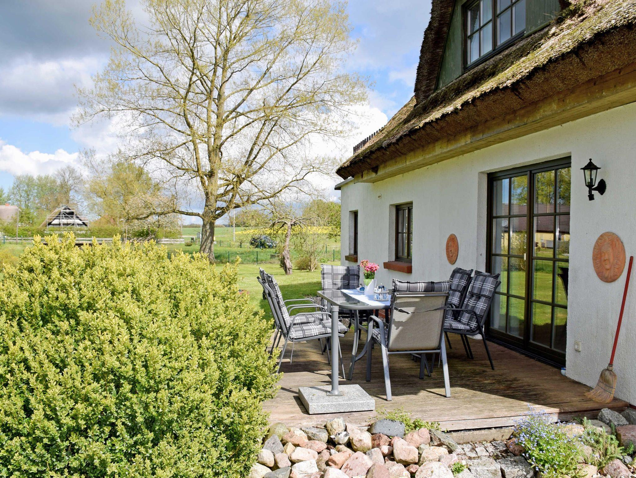 Modernisiertes, reetgedecktes Ferienhaus in ruhiger Natur mit Garten und Moorblick auf Rügen.