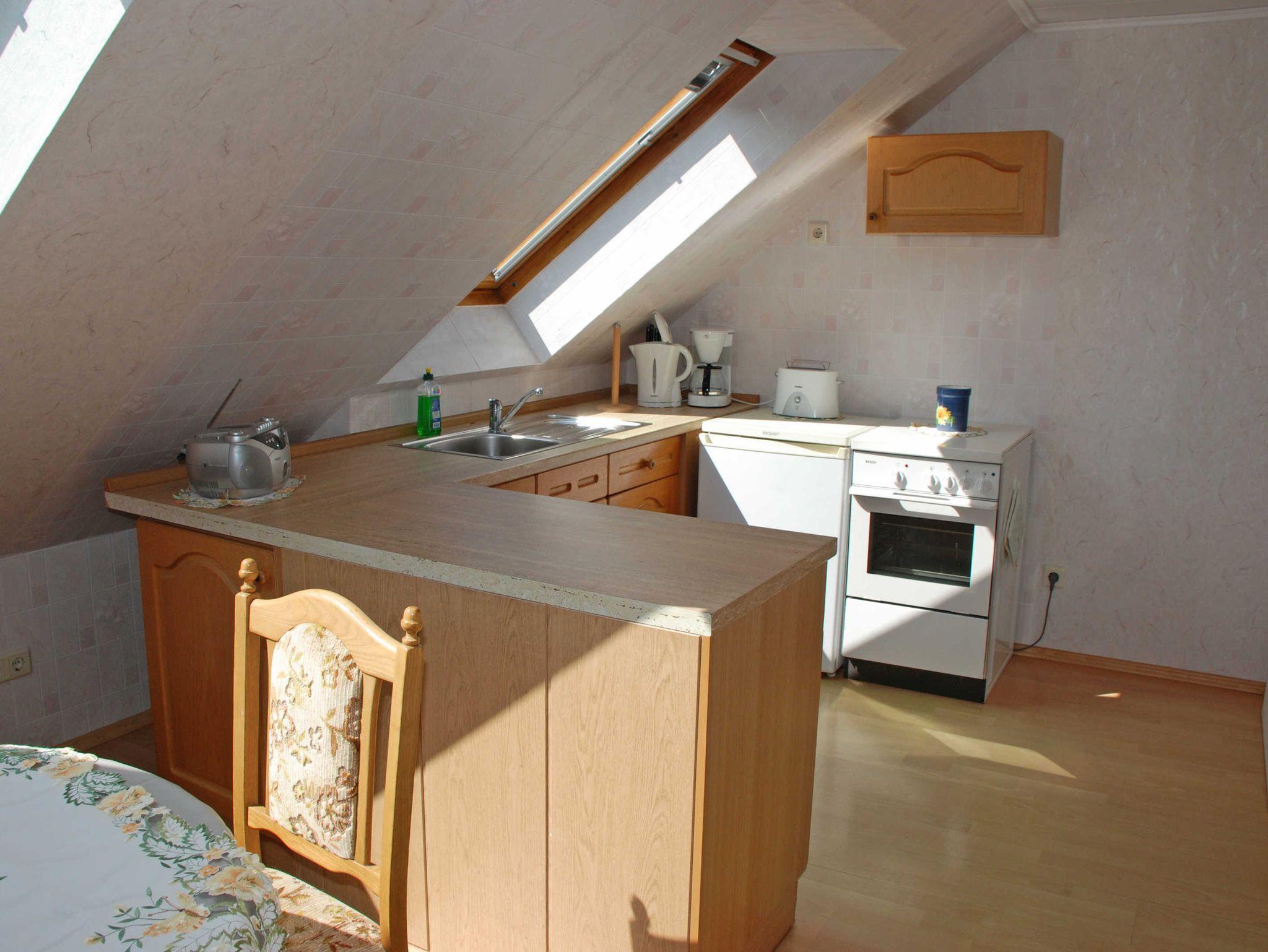 Bettwäsche sowie Handtücher können Sie gerne gegen Aufpreis mit hinzubuchen oder selbst mitbringen. Das große Bad ist mit Dusche, WC und Waschtisch ausgestattet und verfügt über Tageslicht. Zum Appartement gehört auch eine große Balkonterrasse mit Gartenmöbeln. Von hier aus haben Sie einen sehr schönen Ausblick.