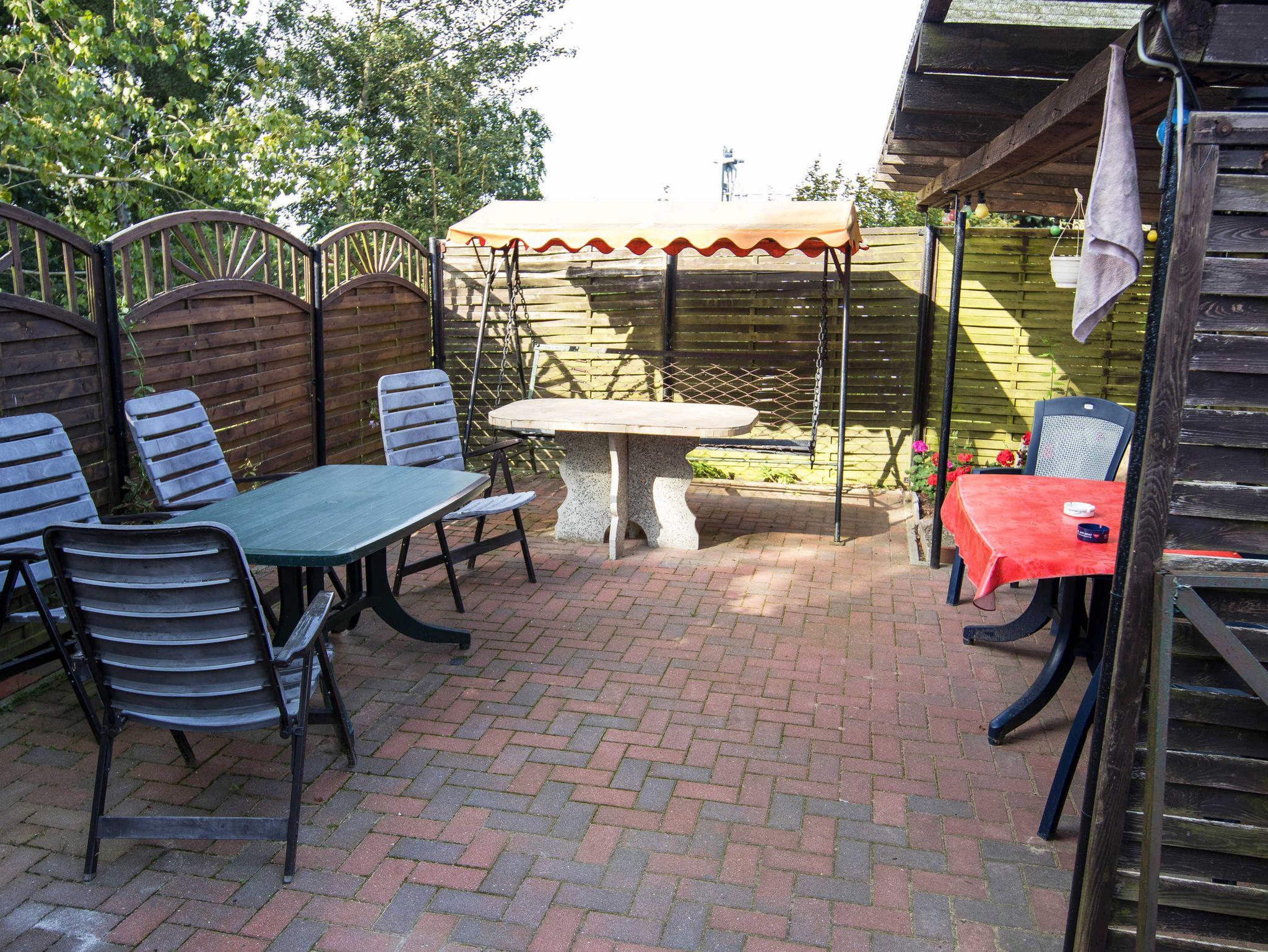 Auf dem Grundstück kann nicht nur das Auto geparkt, sondern auch auf der Terrasse gegrillt werden.