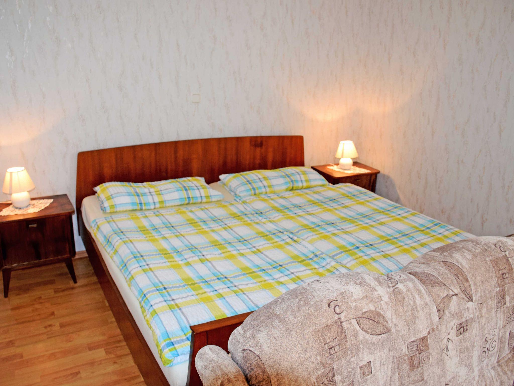 Im Schlafbereich befindet sich ein bequemes Doppelbett mit Nachttischen und Leselampen. Ein kleines Kinderreisebett und ein Hochstuhl können auf Wunsch kostenlos bereit gestellt werden. Für einen 3. Gast wird als Aufbettung ein Reisebett in der Wohnung zusätzlich aufgestellt. Bettwäsche sowie Handtücher können Sie gerne gegen Aufpreis mit hinzubuchen oder selbst mitbringen. Das Bad ist mit Dusche, WC und Waschtisch ausgestattet und verfügt über Tageslicht. Zum Appartement gehört auch eine Sitzecke mit Gartenmöbeln.