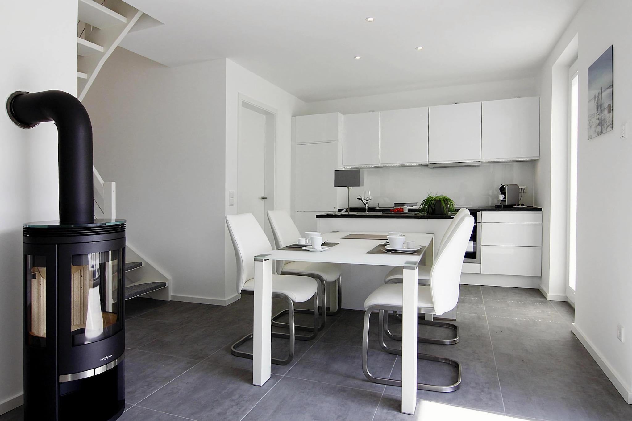 Modernes Ferienhaus auf Usedom mit Kamin und Hafenblick für erholsame Tage am Wasser.