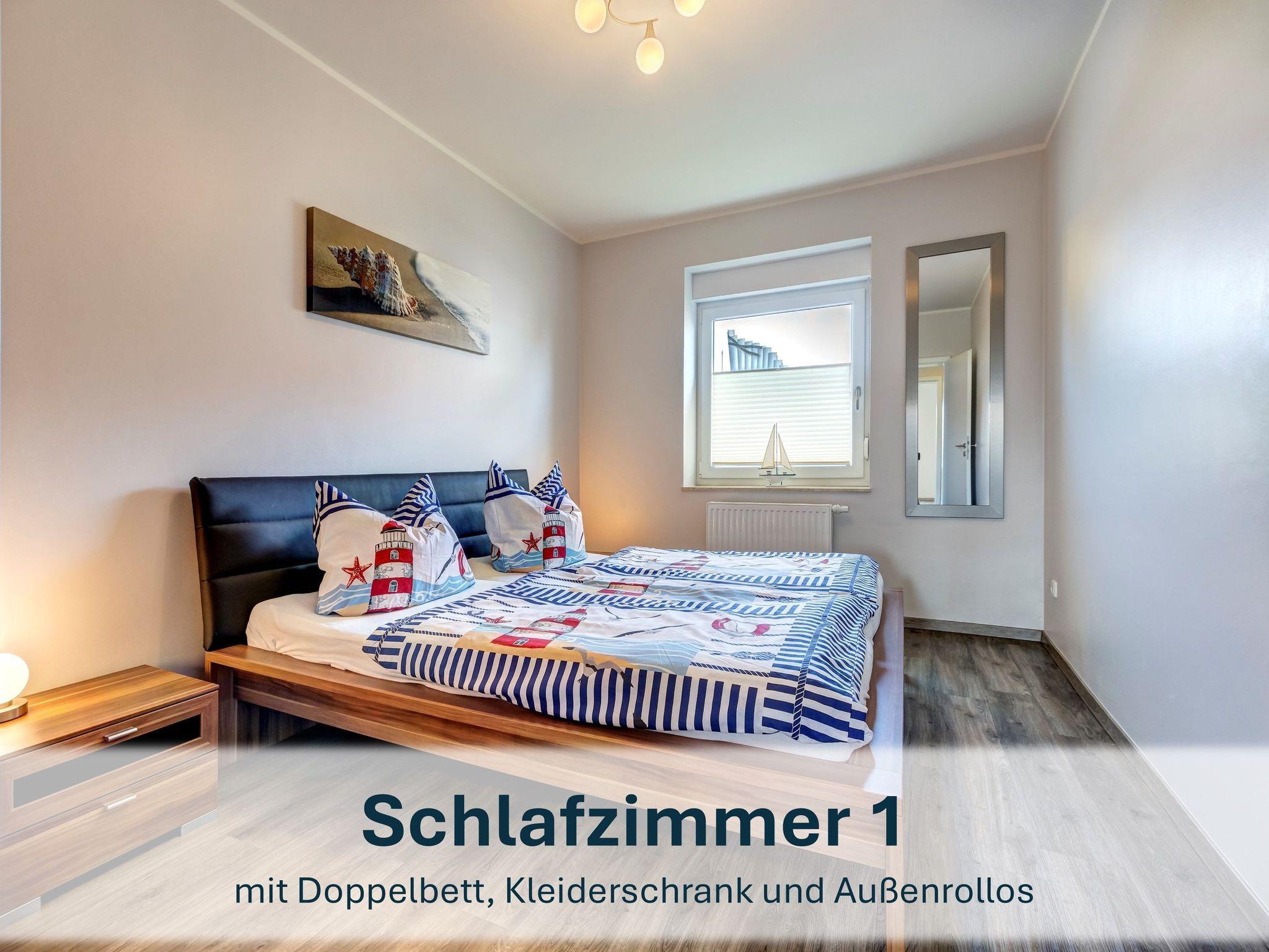 Die ebenerdig gelegene Ferienwohnung Nr. 1 verfügt über einen separaten, barrierefreien Eingang und ist auch für Rollstuhlfahrer geeignet. Sie bietet zwei Schlafzimmer - eines mit Doppelbett, eines mit zwei Einzelbetten - sowie ein modernes Badezimmer mit ebenerdiger Dusche. Der offene Wohnbereich mit gemütlicher Sofaecke und angrenzender, voll ausgestatteter Küche (inkl. Spülmaschine, Ceranherd, Backofen, Kühlschrank mit Gefrierfach, Mikrowelle, Kaffeemaschine, Wasserkocher und Toaster) lädt zum Wohlfühlen ein. WLAN, ein Parkplatz sowie ein abschließbarer Fahrradschuppen stehen zur Verfügung. Ein Gemeinschaftsraum befindet sich im Erdgeschoss des Haupthauses. Wäschepakete, ein Kinderreisebett mit passendem Wäschepaket sowie ein Hochstuhl können kostenpflichtig dazugebucht werden. Die Endreinigung umfasst ein Geschirrtuch und einen Duschvorleger. Die Kaution ist mit der Restzahlung zu überweisen.