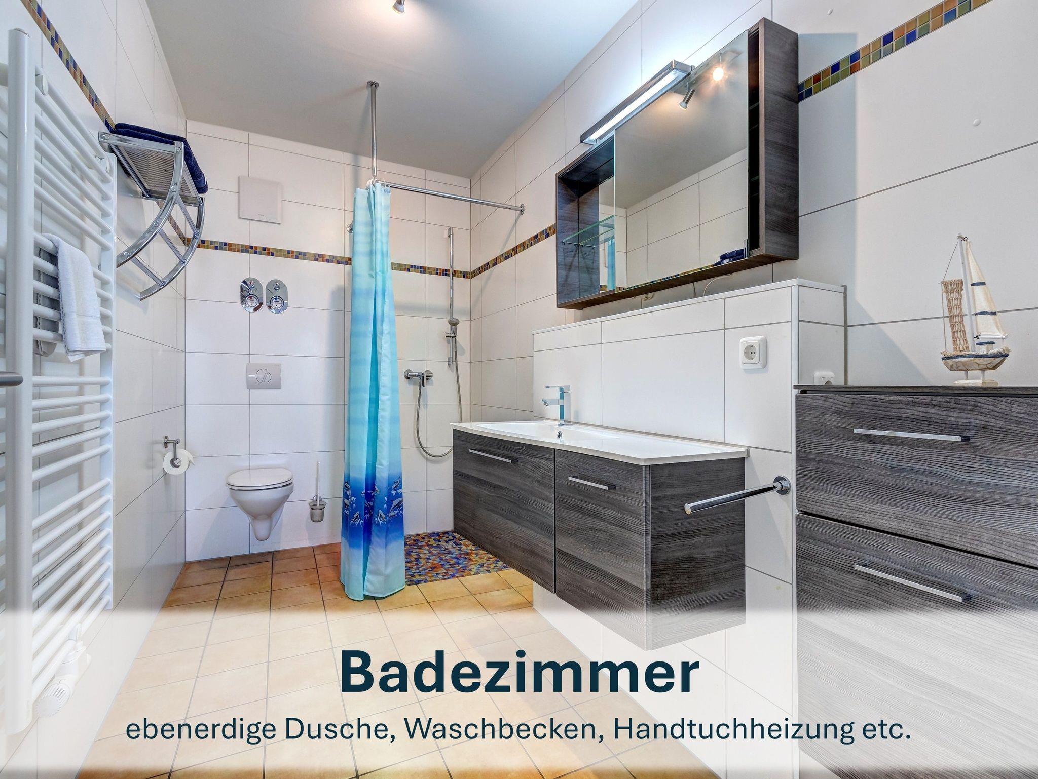 Das großzügige Bad mit ebenerdiger Dusche rundet das komfortable Raumangebot ab.