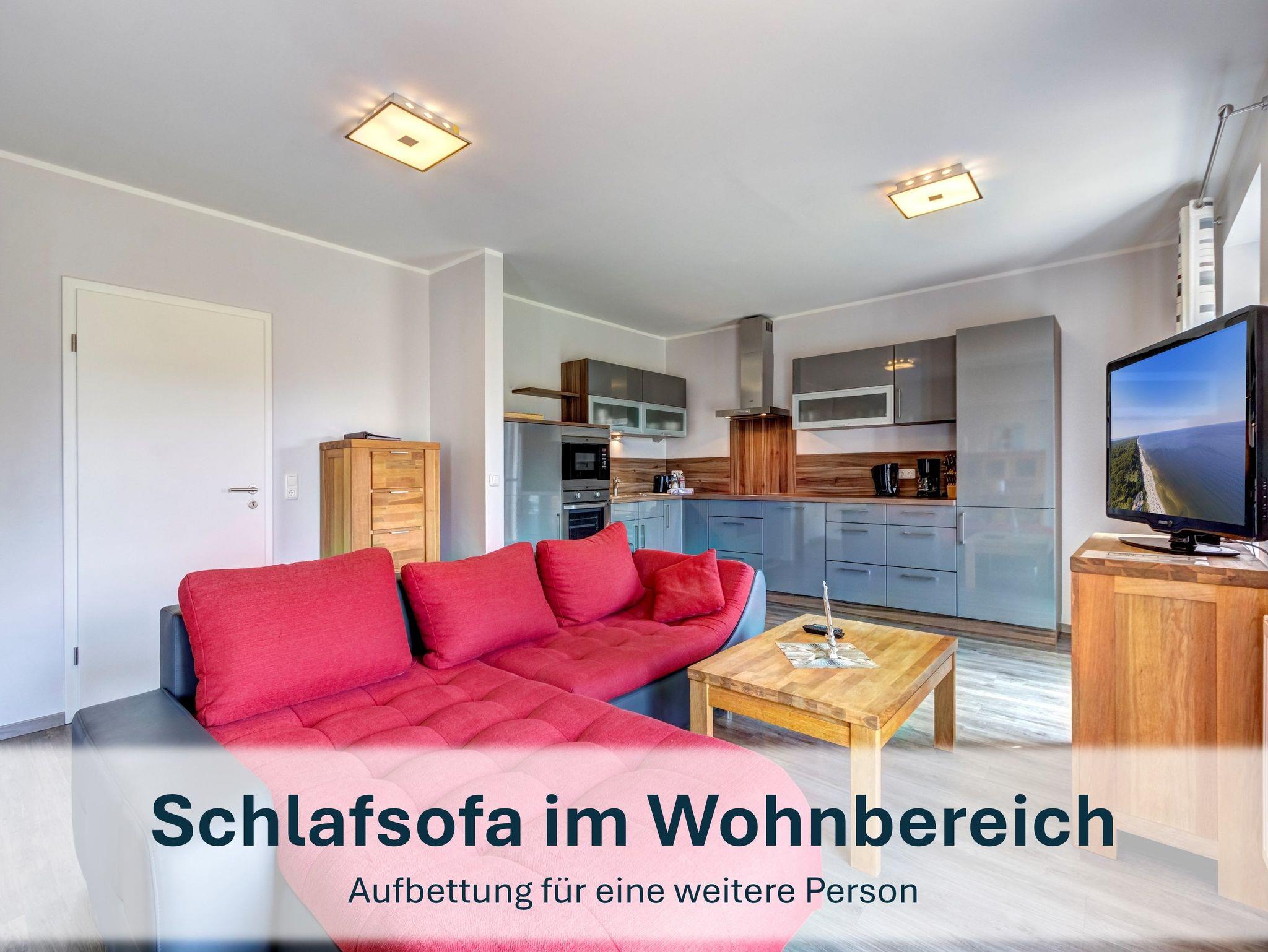 Zwei gemütliche Schlafzimmer - eines mit Doppelbett, das andere mit zwei Einzelbetten - sorgen für erholsame Nächte. Im Wohnzimmer mit Schlafcouch findet eine weitere Person bequem Platz. Die offene voll ausgestattete Küche mit angrenzendem Essbereich lädt zu gemeinsamen Mahlzeiten ein und bietet direkten Zugang zur möblierten Terrasse - perfekt für entspannte Stunden im Freien.