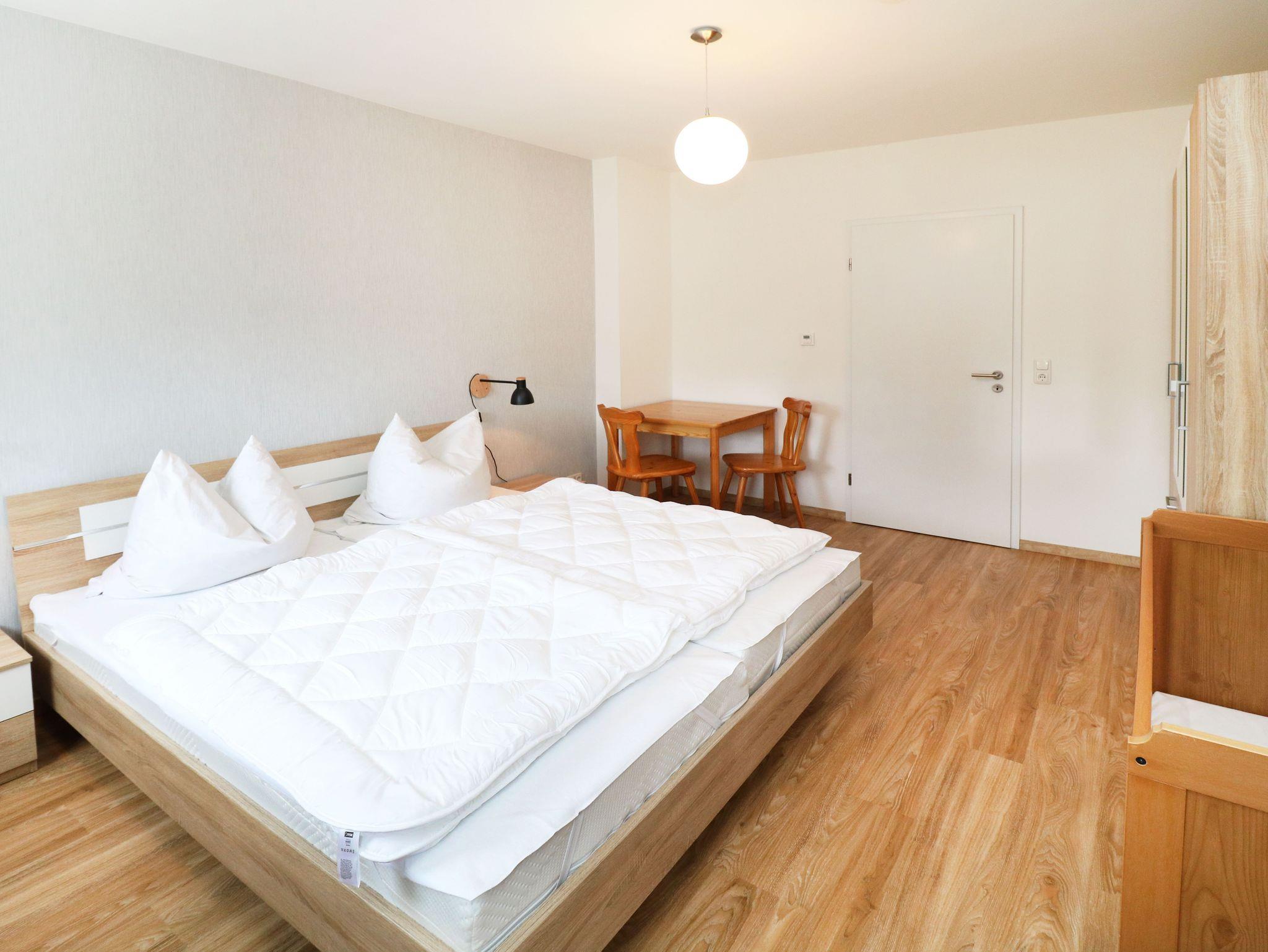 - 1 Schlafzimmer mit Doppelbett 2x90x200 cm, mit Kinderbett, Tisch 80x80 cm und zwei Stühlen