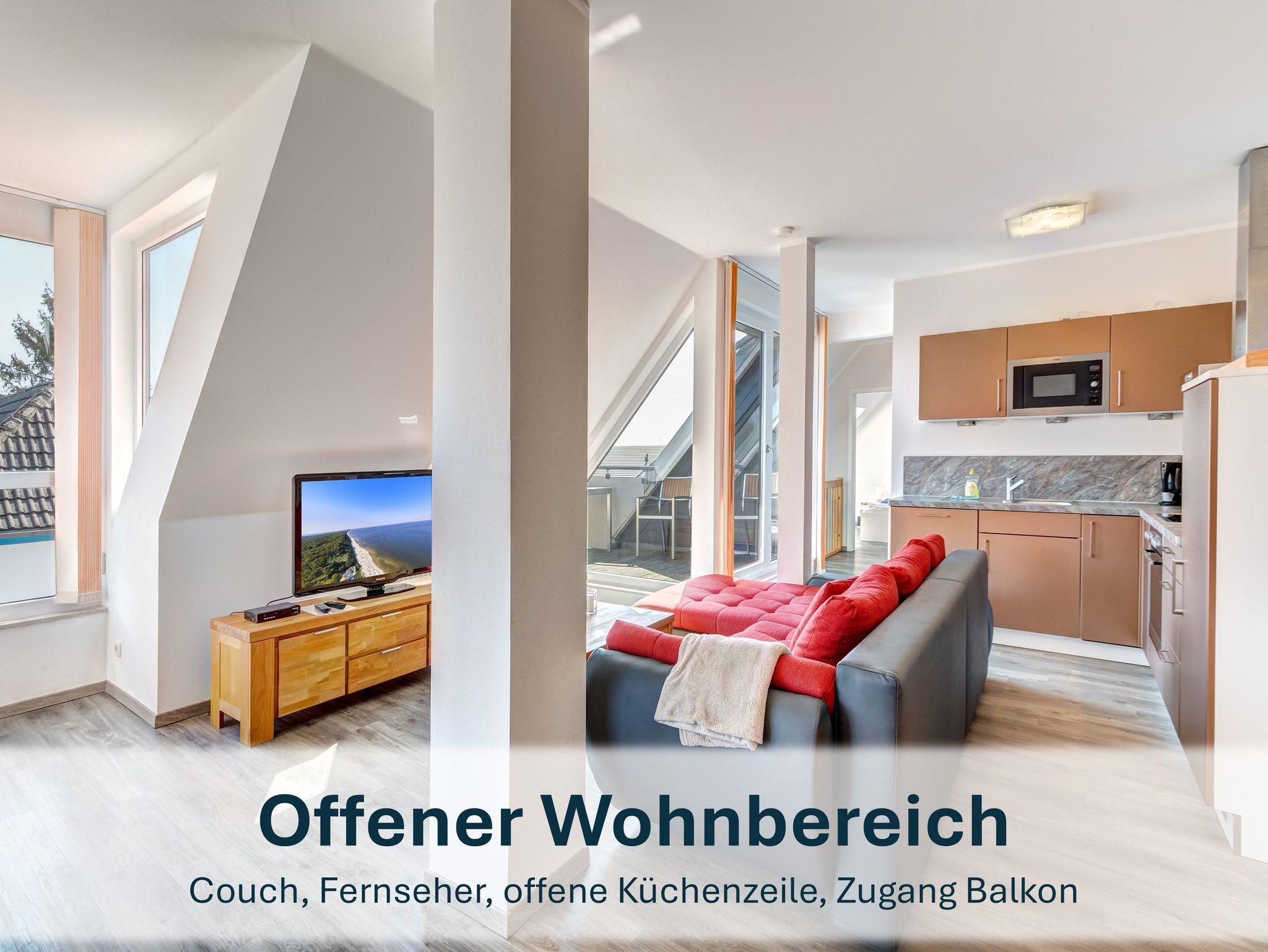 Die großzügige Maisonette-Kombination „Slup“ erstreckt sich über zwei separate Wohnungen im Ober- und Dachgeschoss der Ferienresidenz „Zum Seglerhafen“ in Peenemünde. Mit insgesamt 142m² Wohnfläche bietet sie Platz für bis zu 12 Personen (10 Erwachsene und 2 Kleinkinder) und ist damit die ideale Wahl für große Familien oder einen Urlaub mit Freunden.