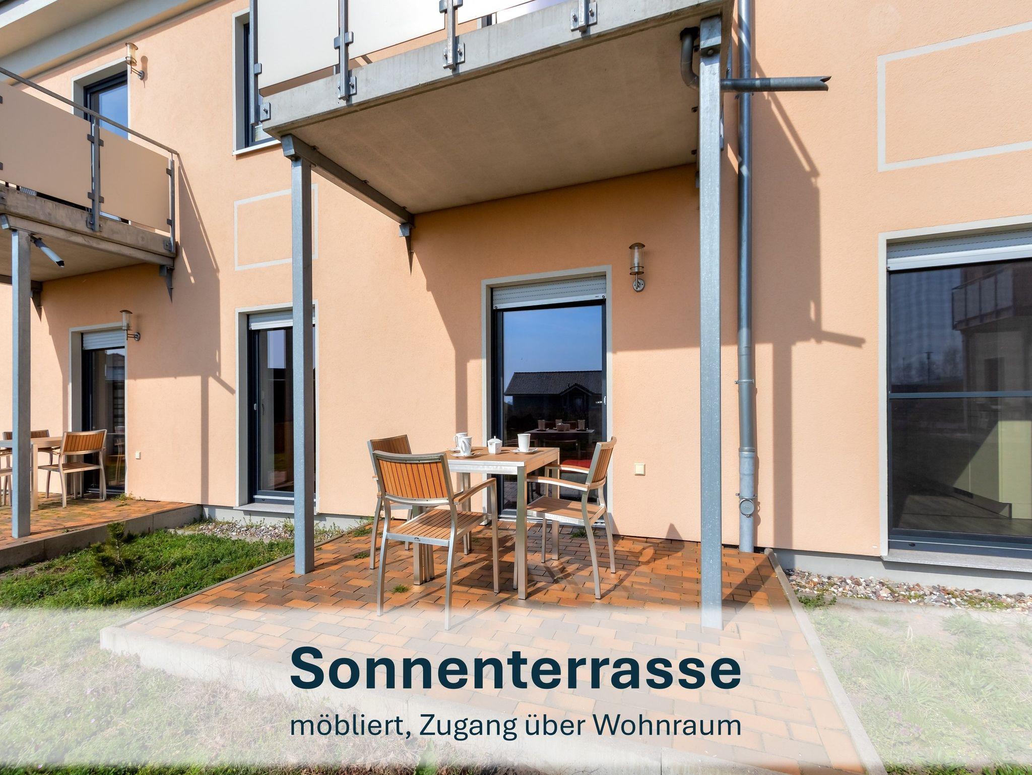 Ebenfalls im Erdgeschoss liegt die Wohnung „Tjalk 03“ (72m²), die sich mit identischer Ausstattung perfekt ergänzt: Zwei Schlafzimmer, ein großzügiger Wohnbereich mit Küche und ein eigener Terrassenplatz bieten Platz für bis zu fünf Personen und ein Kleinkind.