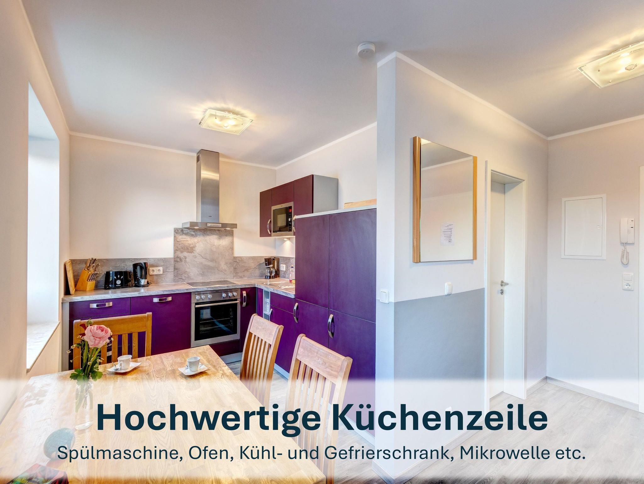 Mit einer Gesamtfläche von ca. 250m² bietet das Ensemble verteilt über Erd-, Ober- und Dachgeschoss viel Raum zur Entfaltung. Die modern ausgestatteten Ferienwohnungen verfügen jeweils über eine vollwertige Küche mit Spülmaschine, Kühlschrank mit Gefrierfach, Ceranfeld, Backofen, Mikrowelle, Kaffeemaschine und Wasserkocher. Insgesamt stehen Ihnen mehrere Schlafzimmer, komfortable Wohnbereiche sowie Balkone oder Terrassen zur Verfügung.