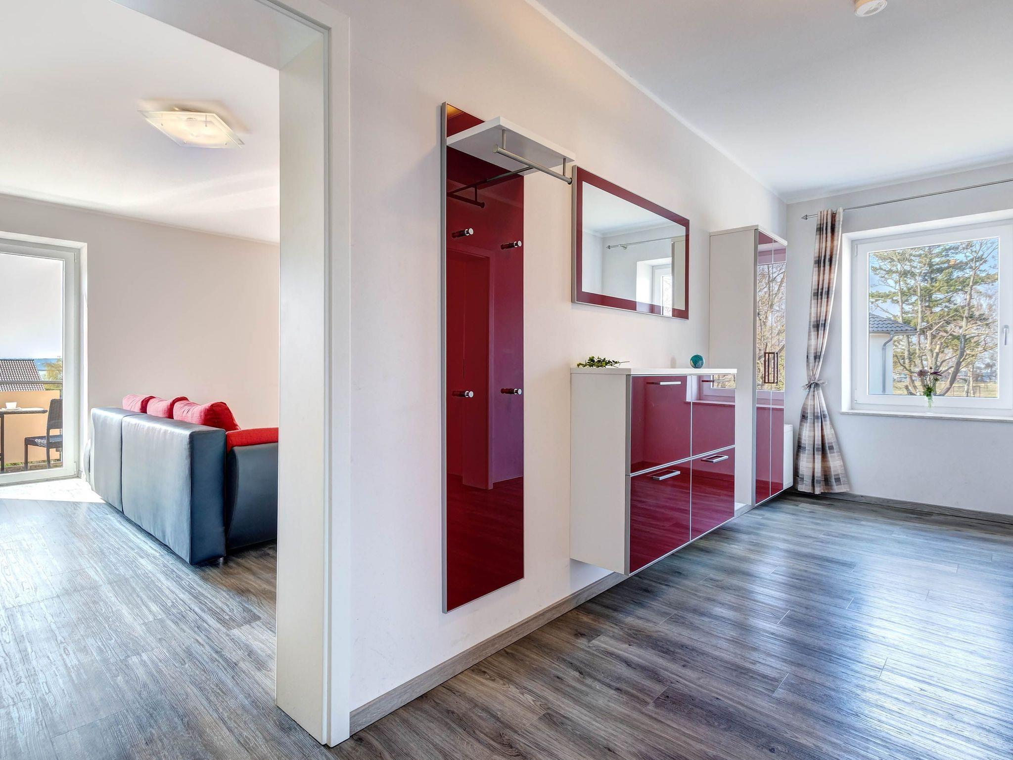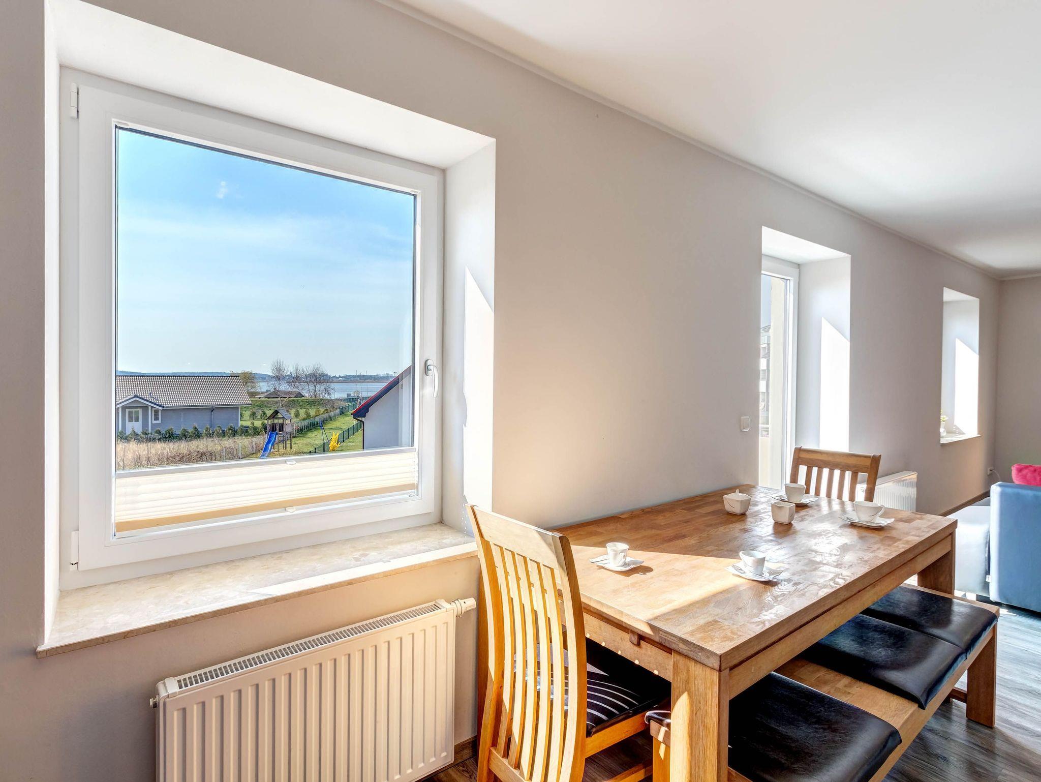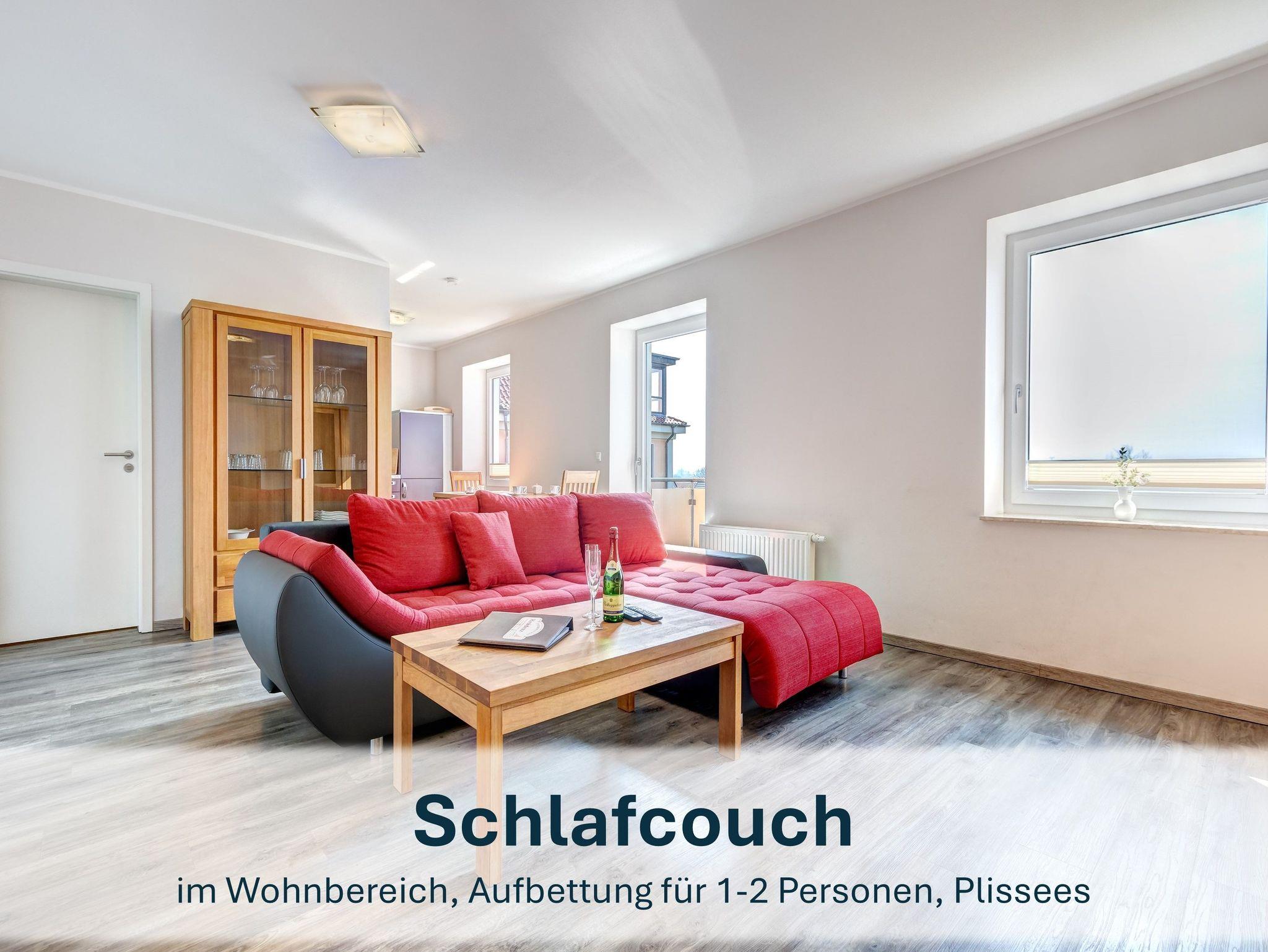 Gemütliche Ferienwohnung mit Balkon und Blick auf den Peenestrom in Peenemünde, ideal für Familien und Urlaub mit Haustieren.