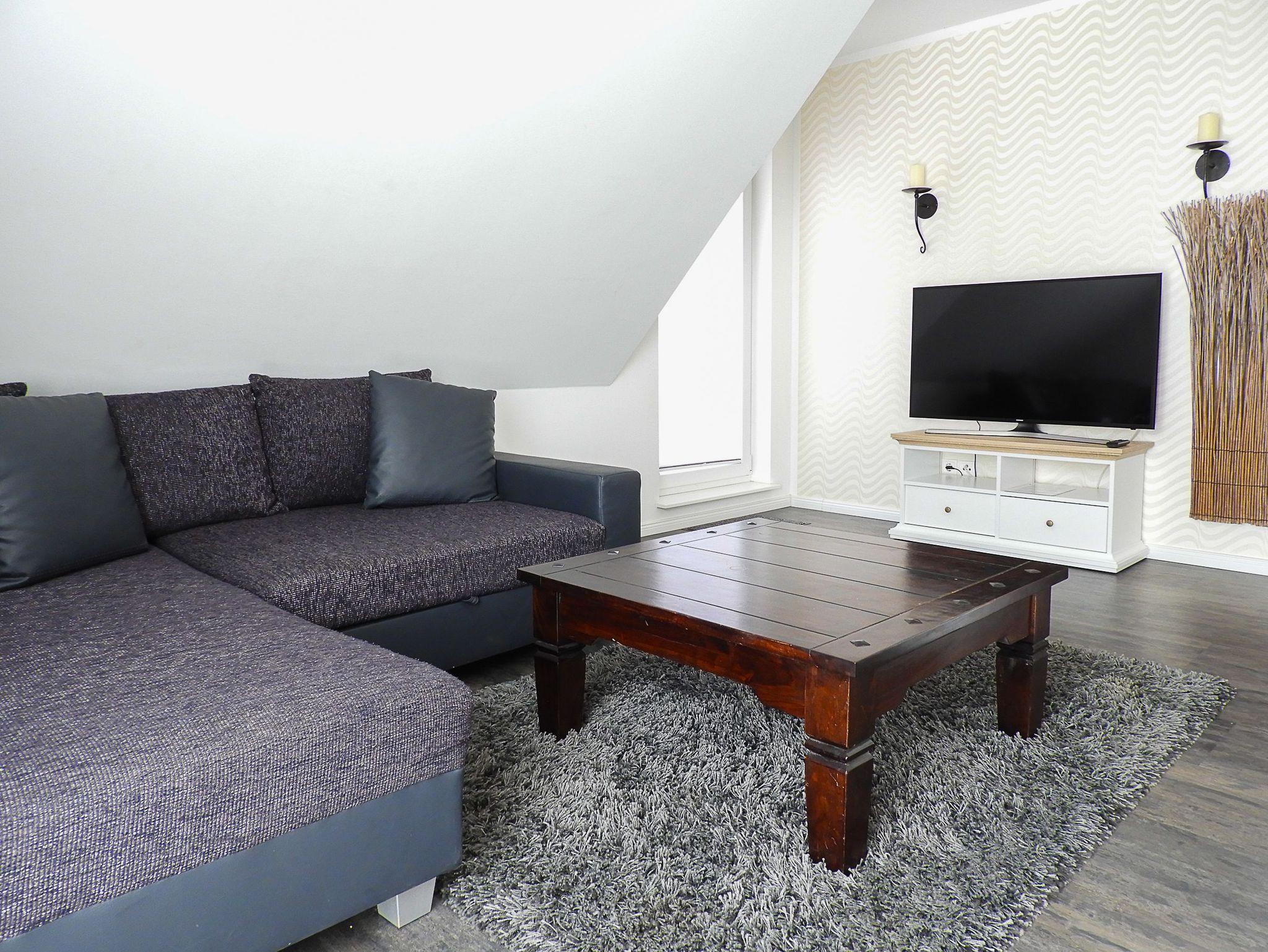 Die Wohnzimmercouch kann in der oberen Wohnung als Schlafsofa für die 3. und 4. Person genutzt werden.