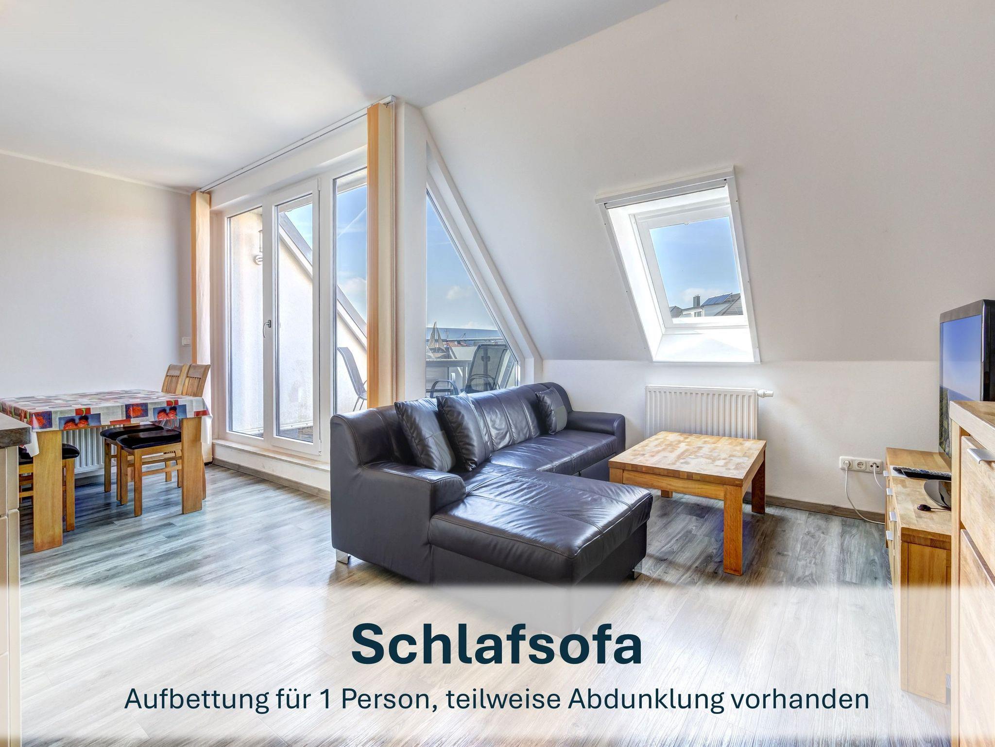 Die Maisonettewohnung 13 erstreckt sich über zwei Etagen und bietet mit durchdachter Raumaufteilung und moderner Ausstattung ideale Bedingungen für einen erholsamen Aufenthalt. Im unteren Bereich erwartet Sie ein offener Wohnbereich mit Schlafcouch und Zugang zum möblierten Balkon ? perfekt für entspannte Stunden im Freien. Die voll ausgestattete Küche mit Spülmaschine, Kühlschrank mit Gefrierfach, Mikrowelle, Ceranfeld, Backofen, Toaster, Kaffeemaschine und Wasserkocher lässt keine Wünsche offen.