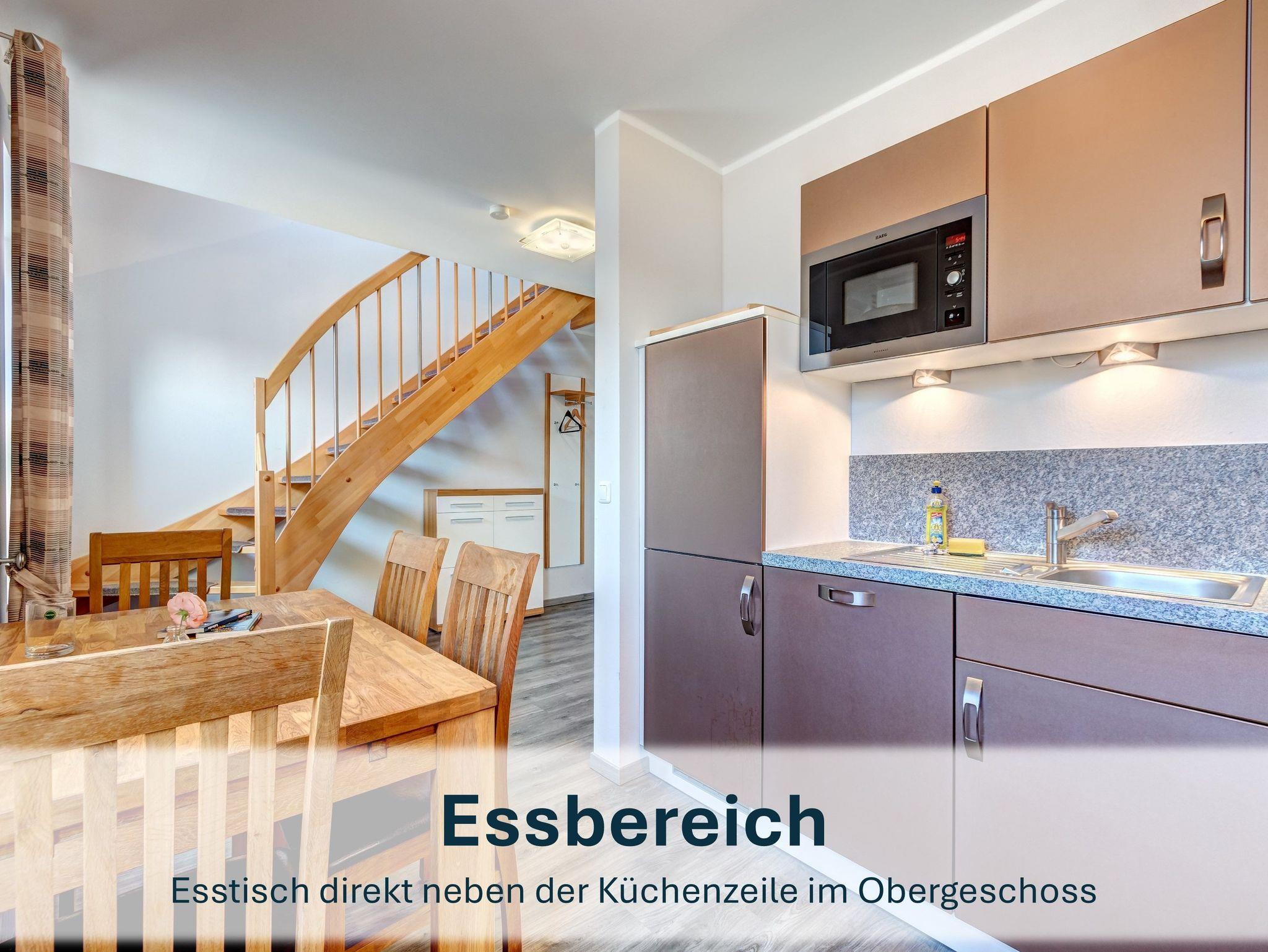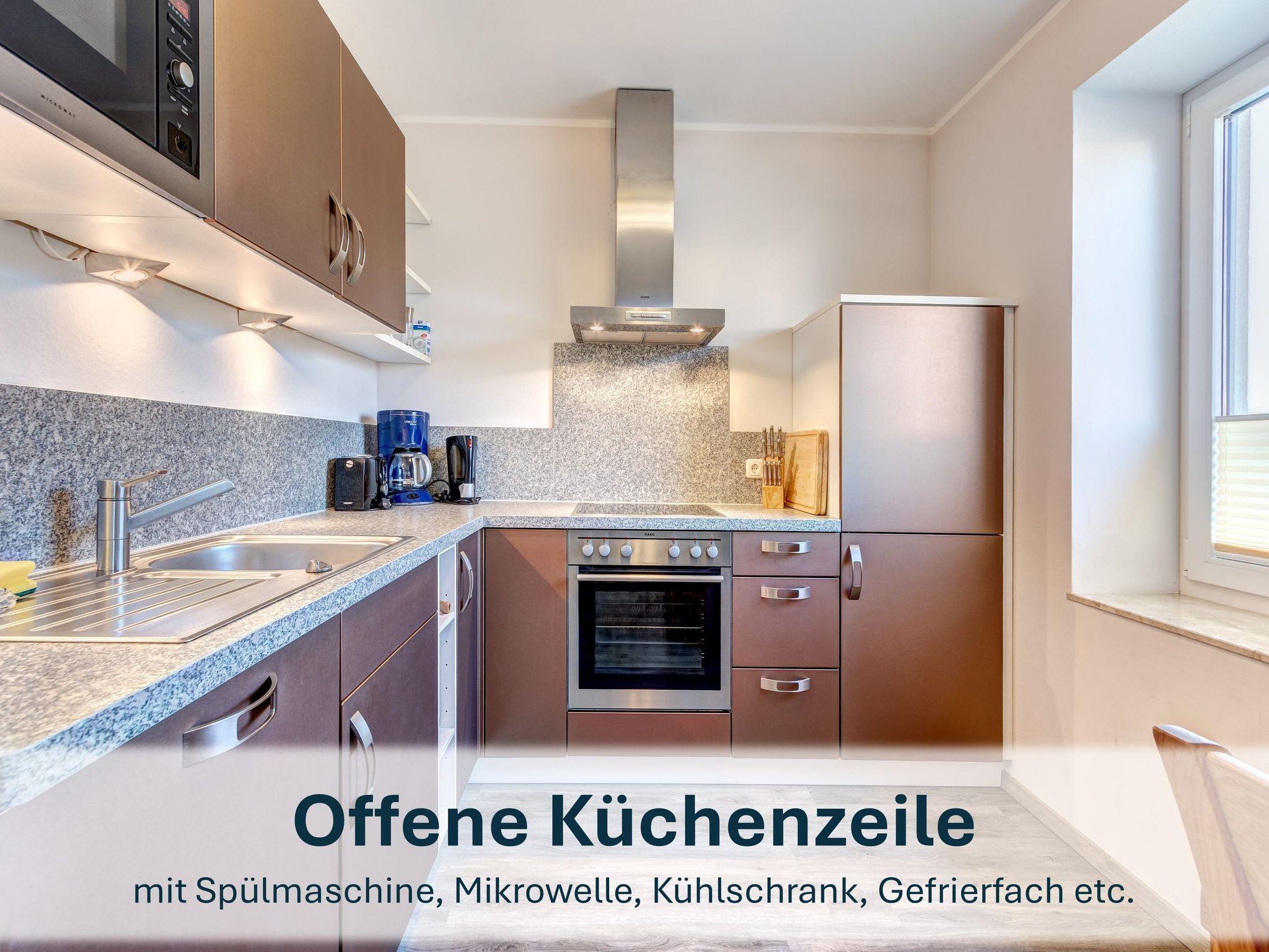 Die voll ausgestattete Küche mit Herd, Backofen, Kühlschrank mit Gefrierfach, Mikrowelle, Toaster, Kaffeemaschine, Wasserkocher und Spülmaschine lässt keine Wünsche offen. Das separate Schlafzimmer ist mit zwei Einzelbetten eingerichtet, die flexibel zusammen- oder auseinandergestellt werden können.