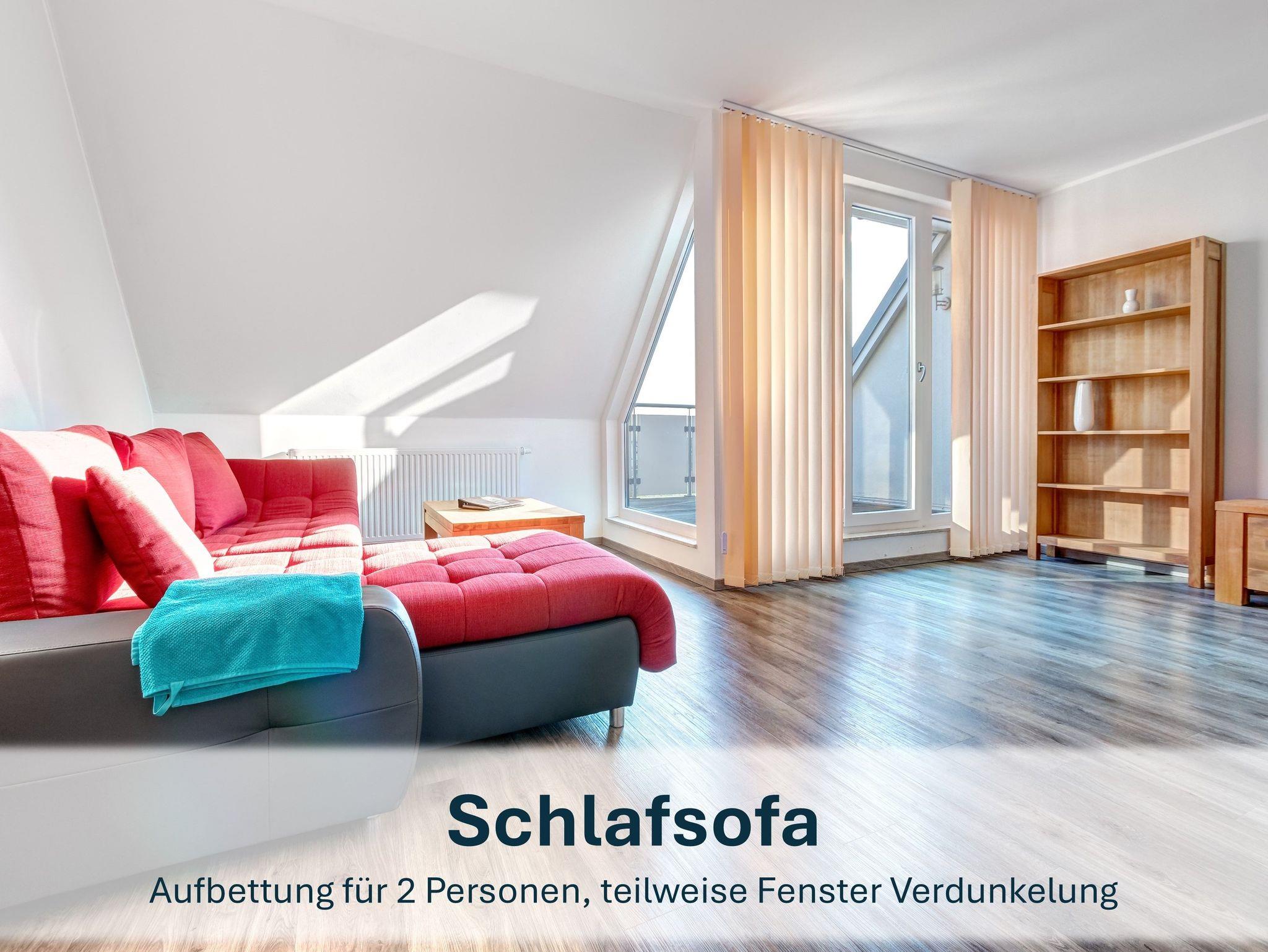 Unsere stilvolle Ferienwohnung bietet mit ca. 70m² viel Platz für Paare, kleine Familien oder auch befreundete Gäste. Der helle Wohnbereich mit bequemer Schlafcouch lädt zum Entspannen ein, während die voll ausgestattete Küche mit Esstisch perfekte Voraussetzungen für gemeinsame Mahlzeiten bietet.