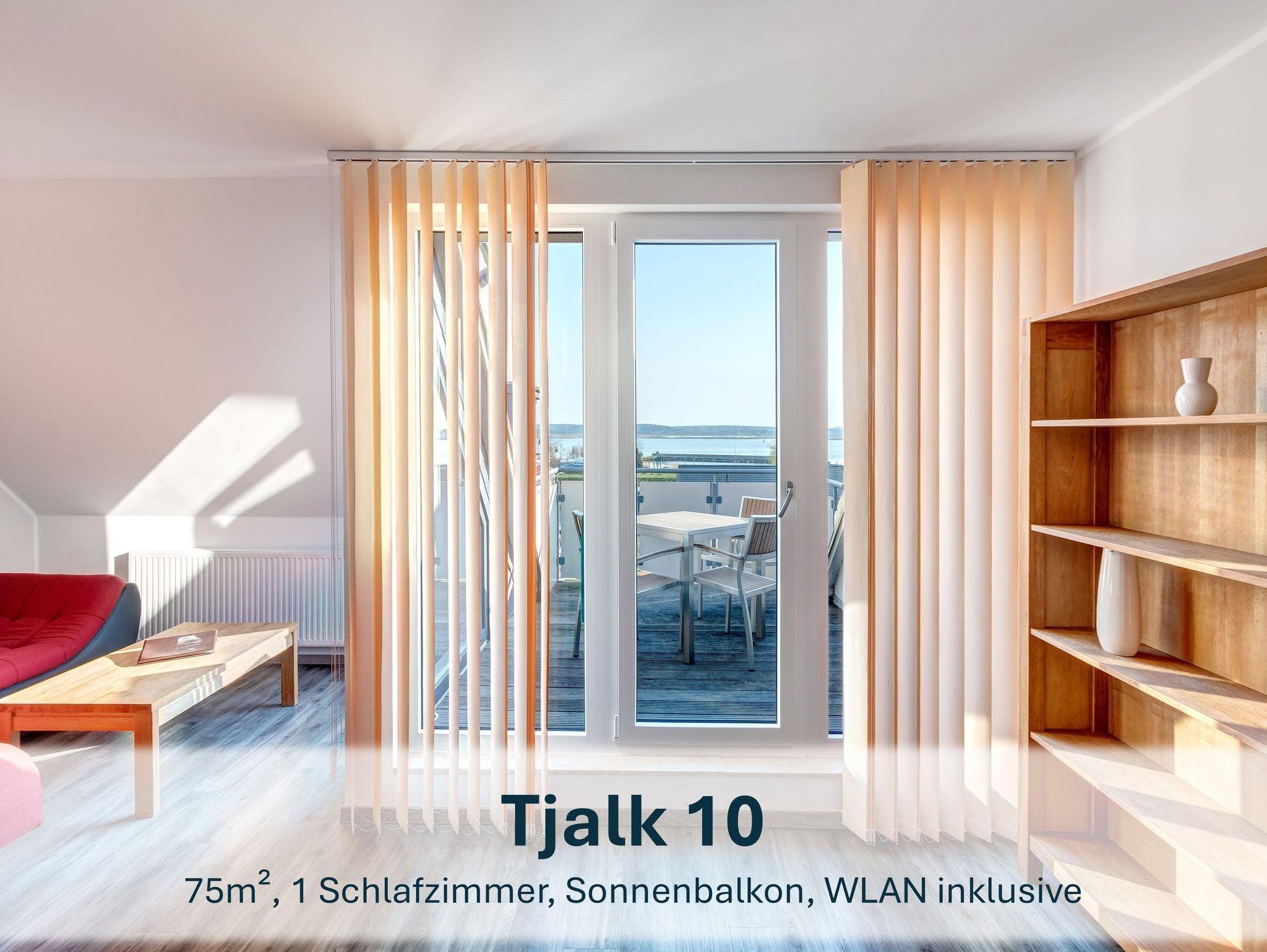 Die Ferienwohnung „Tjalk 10“ liegt im Obergeschoss und bietet auf 75m² komfortablen Raum für bis zu 4 Personen ? ideal für Paare, Familien oder Freunde. Der lichtdurchflutete Wohnbereich lädt mit einem gemütlichen Schlafsofa, einem Flat-TV und direktem Zugang zum möblierten Balkon zum Entspannen ein.