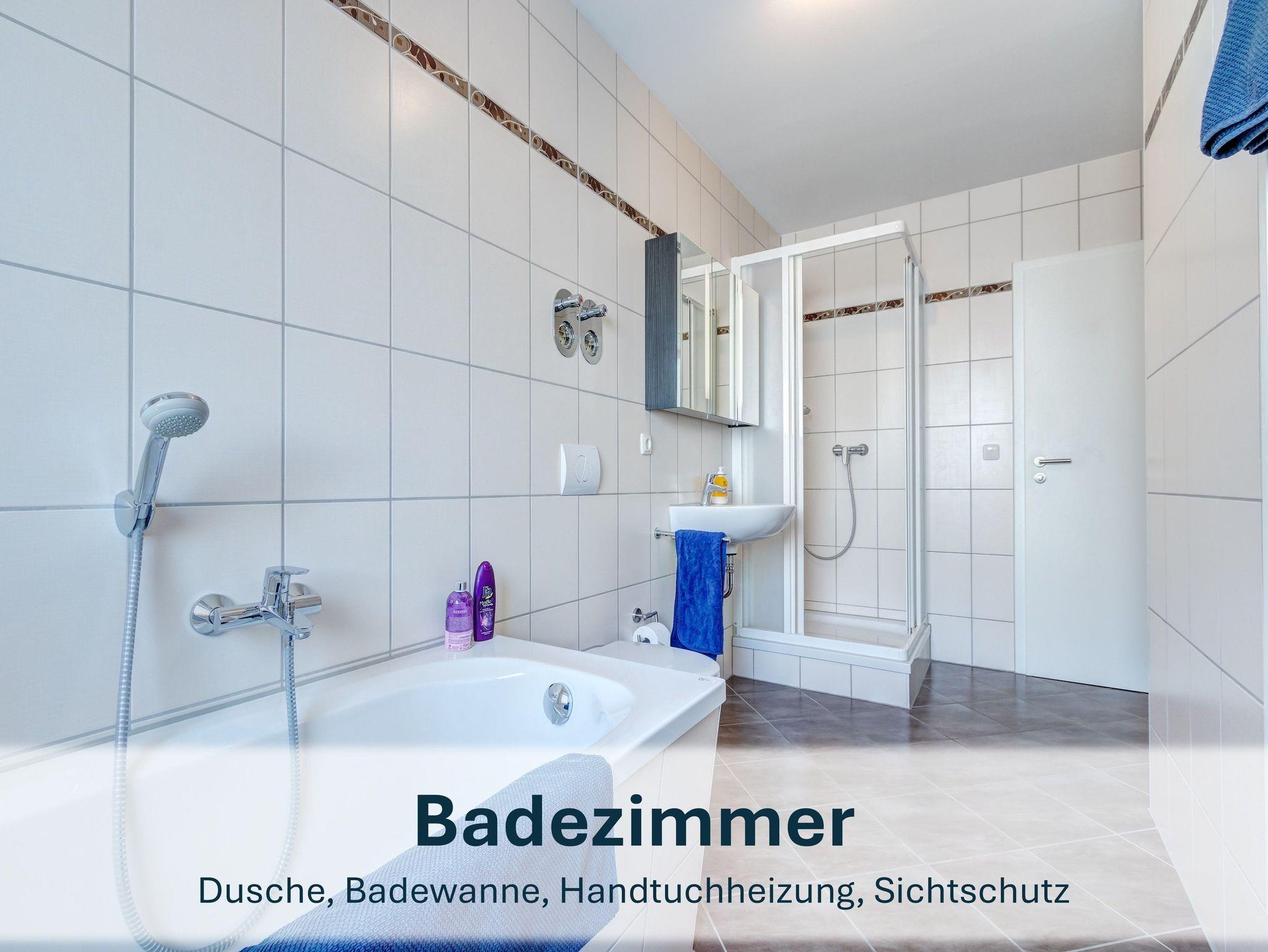 Das moderne Bad ist mit Dusche, Badewanne, WC und Waschbecken ausgestattet. WLAN steht Ihnen in der gesamten Wohnung kostenfrei zur Verfügung.
