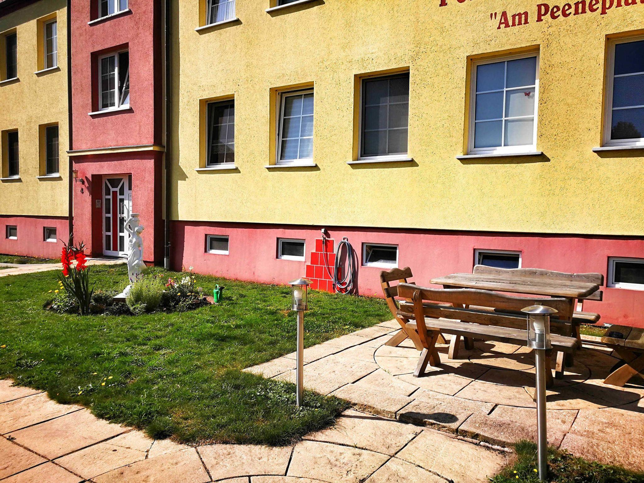 Im Aussenbereich befinden sich Sitzgelegenheiten, die den Gästen des Hauses zur Verfügung stehen.