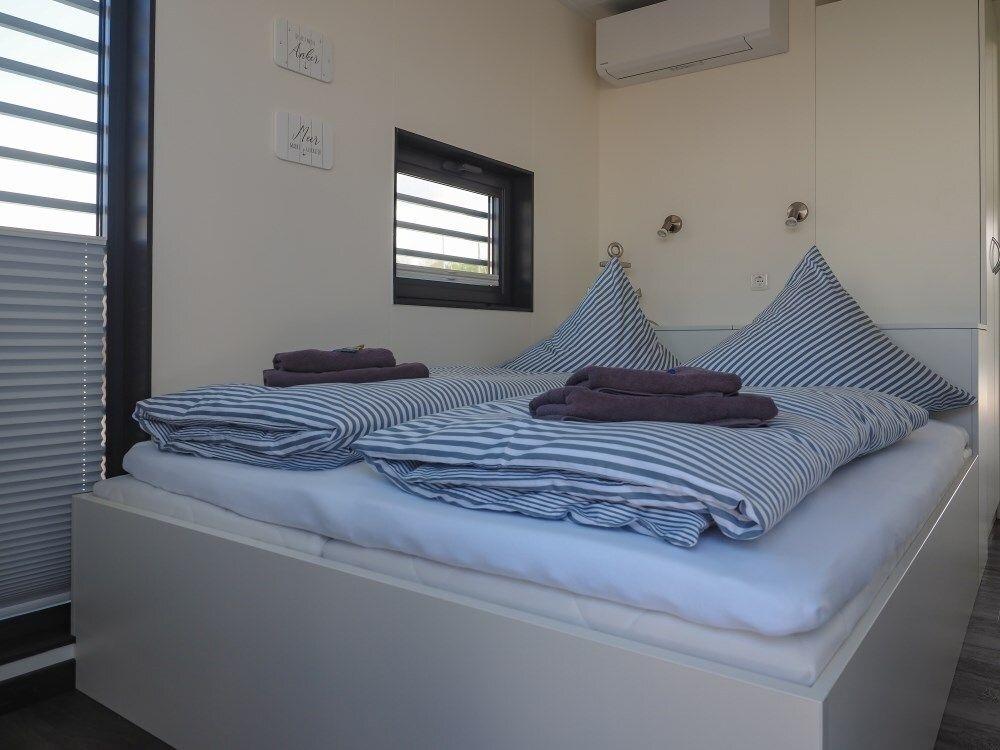 Das Hausboot "Krosse Krabbe" ist ein floating 44. Es besitzt 2 Schlafzimmer mit je einem Doppelbett. Das Badezimmer ist mit einer Dusche ausgestattet und einem separaten WC. Der Wohn- und Essbereich ist ein stilvoll eingerichteter Raum mit einer dreiseitigen Glasfront. Der Kamin rundet das einmalige Erlebnis ab.