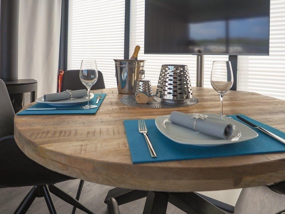 Aus dem Wohn- und Essbereich gelangen Sie auf die Terrasse. Hier können Sie Ihre Mahlzeiten genießen. Erleben Sie das Gefühl von Freiheit auf dem Wasser!
