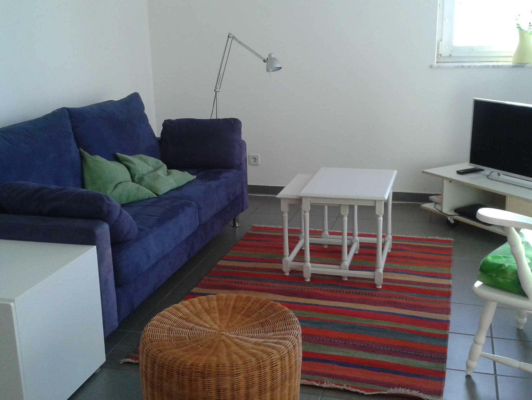 (1,70 m x 2,00 m Liegefläsche) SAT-TV, Stereo-Anlage, kleiner Glastisch, ein extra Stuhl und Hocker, Essecke mit vier Holzstühlen, Kinderhochstuhl, Buffetschrank mit Geschirr. Die separate helle Küche besteht aus einer modernen weißen Einbauküche mit Herd (Ceranfeld) und Backofen und zus. kleinen Essplatz. Bettwäsche (bitte an ein großes Spannlaken für dasSchlafsofa denken!) und Hand-/Geschirrtücher bitte mitbringen.