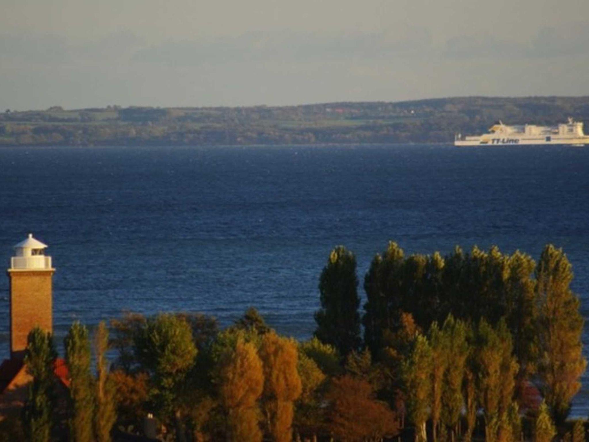 Vom Balkon aus kann man die Morgensonne mit weitem Blick auf Ostsee, auf die Fährschiffe und die Lübecker Bucht genießen.