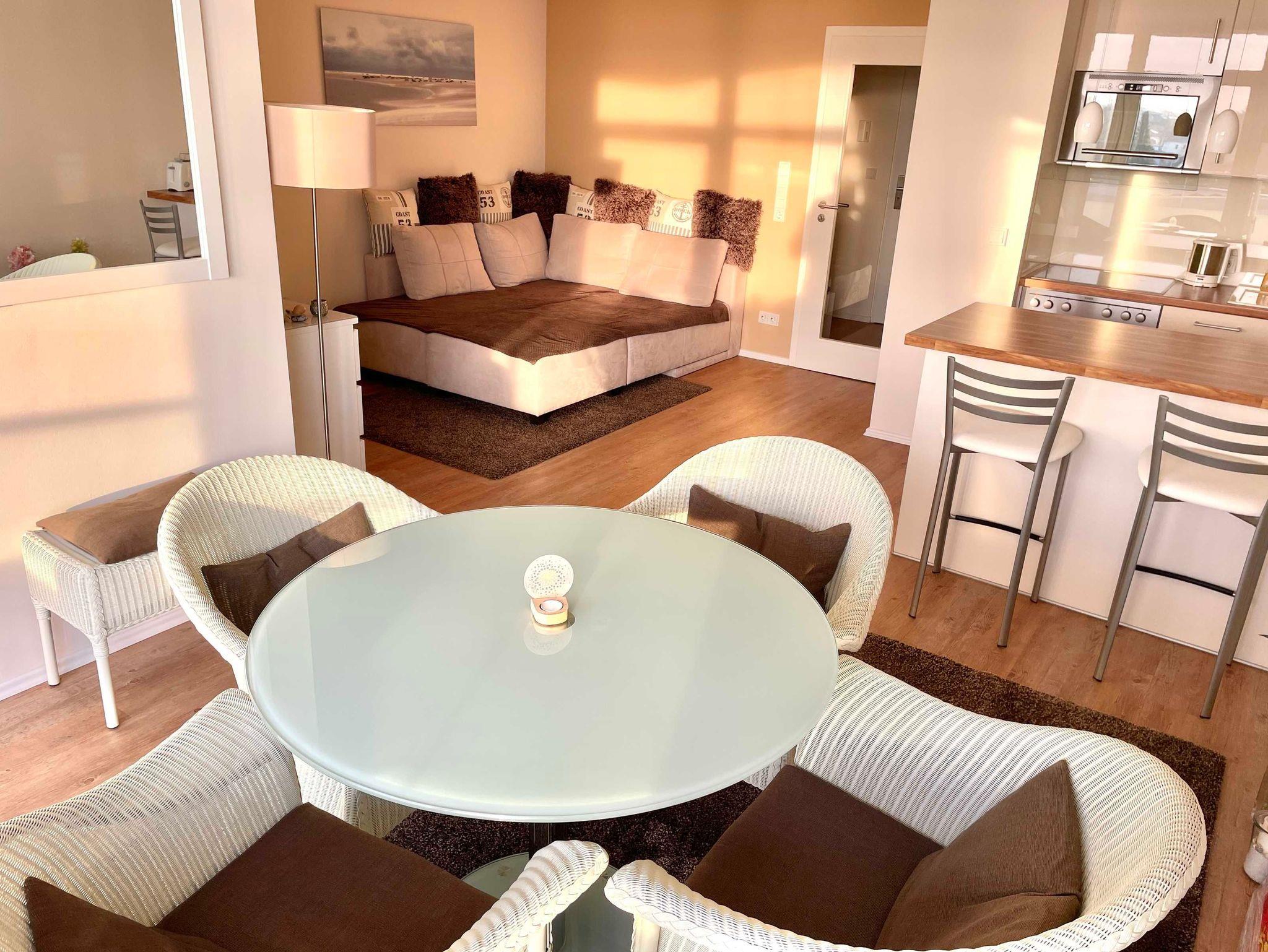 Das geschmackvoll eingerichtete schöne helle 2 Zimmer-Nichtraucherferienappartement bietet durch seine Süd-West-Lage viel Sonne und einen fantastischen Meerblick aus den bodentiefen Fenstern.