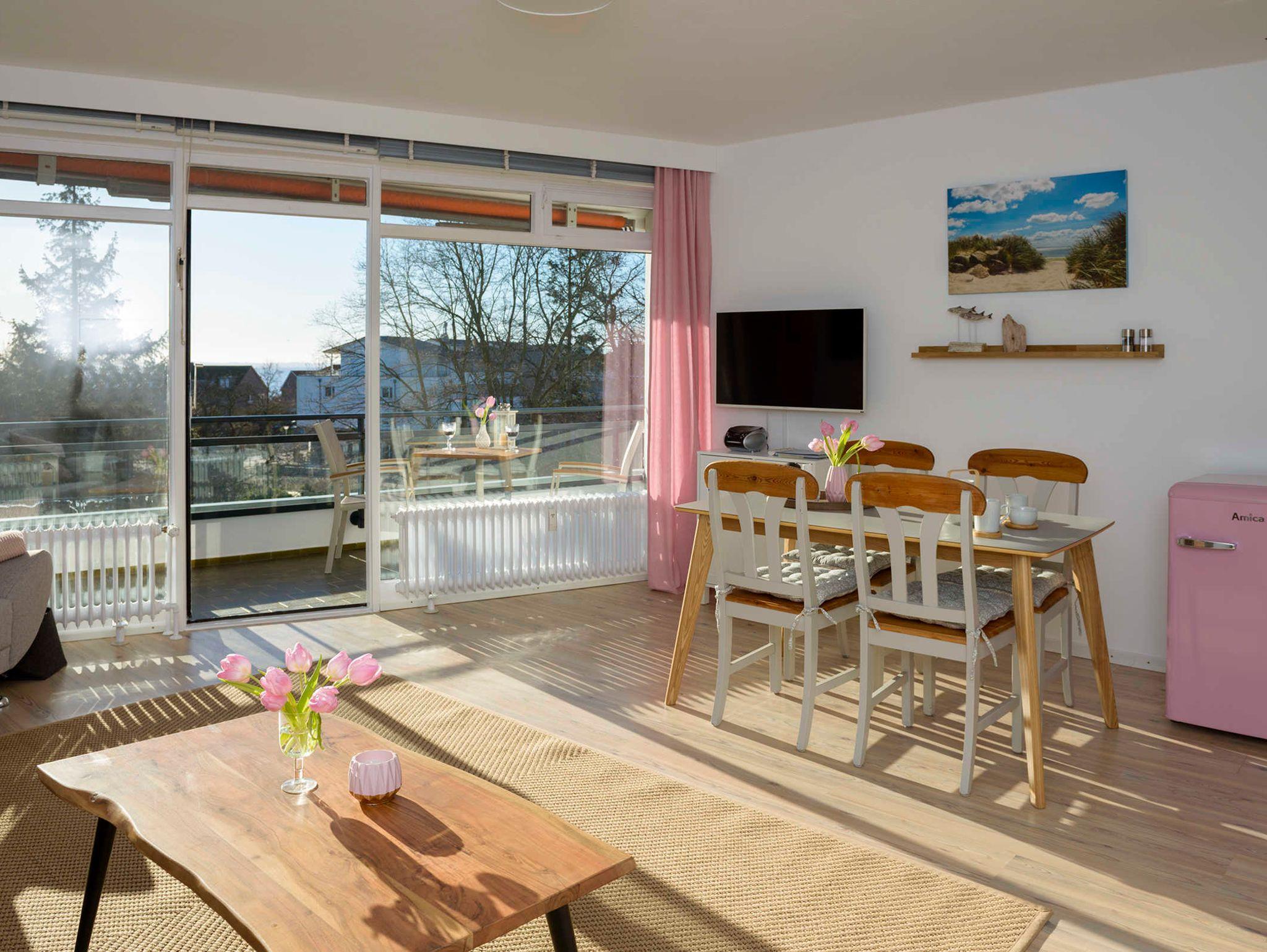 Das strandnahe Apartment Ankerplatz 57 in Pelzerhaken bietet modernen Komfort mit Seeblick und eigener Loggia.