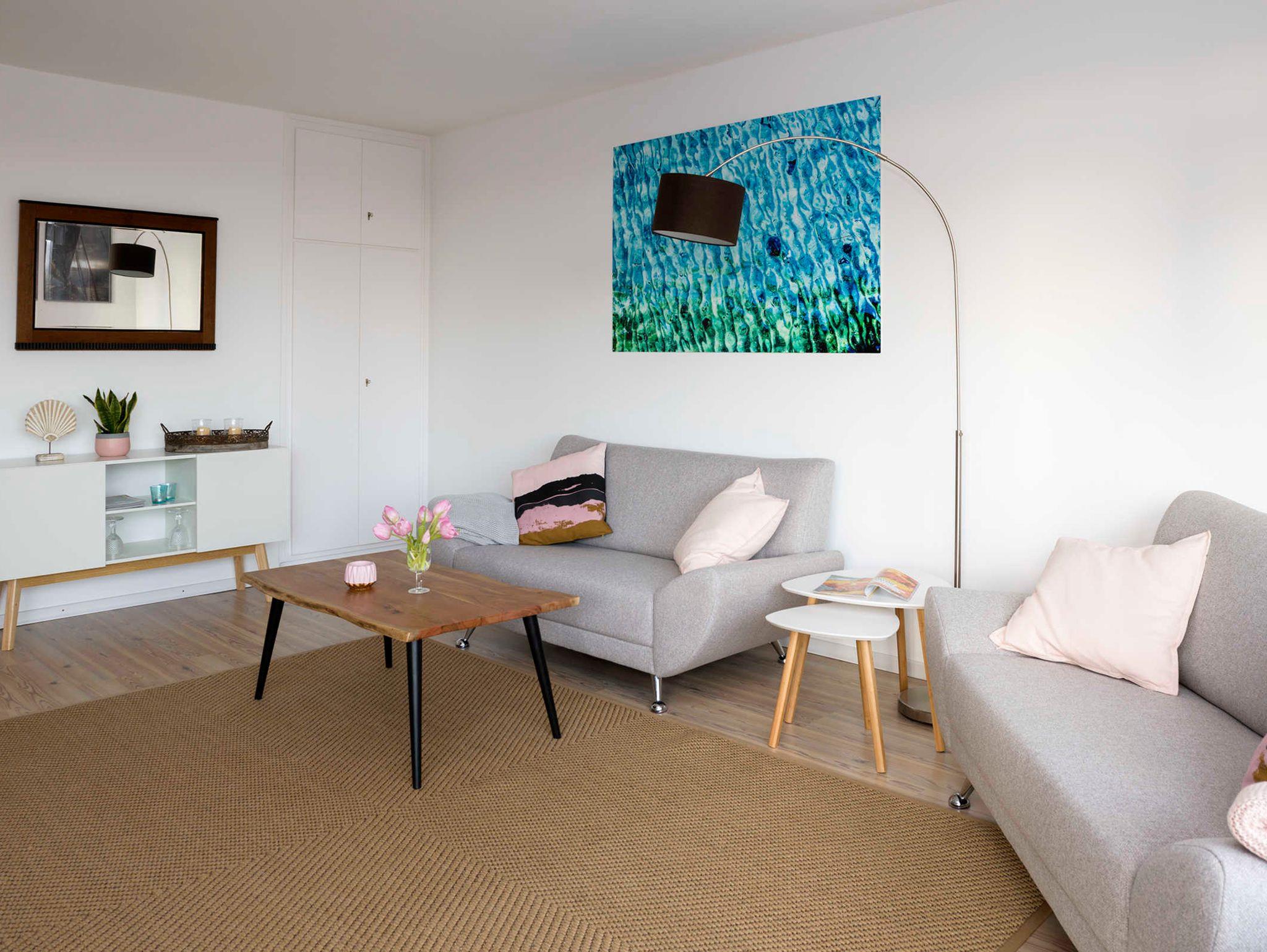 Der Ankerplatz 57 ist ein geschmackvoll eingerichtetes 2-Zimmer-Apartment im 3. Stock. Vom Parkplatz gelangt man über eine Treppenhausanlage zur Wohnung.