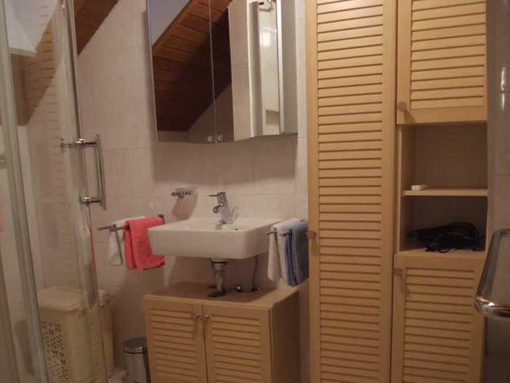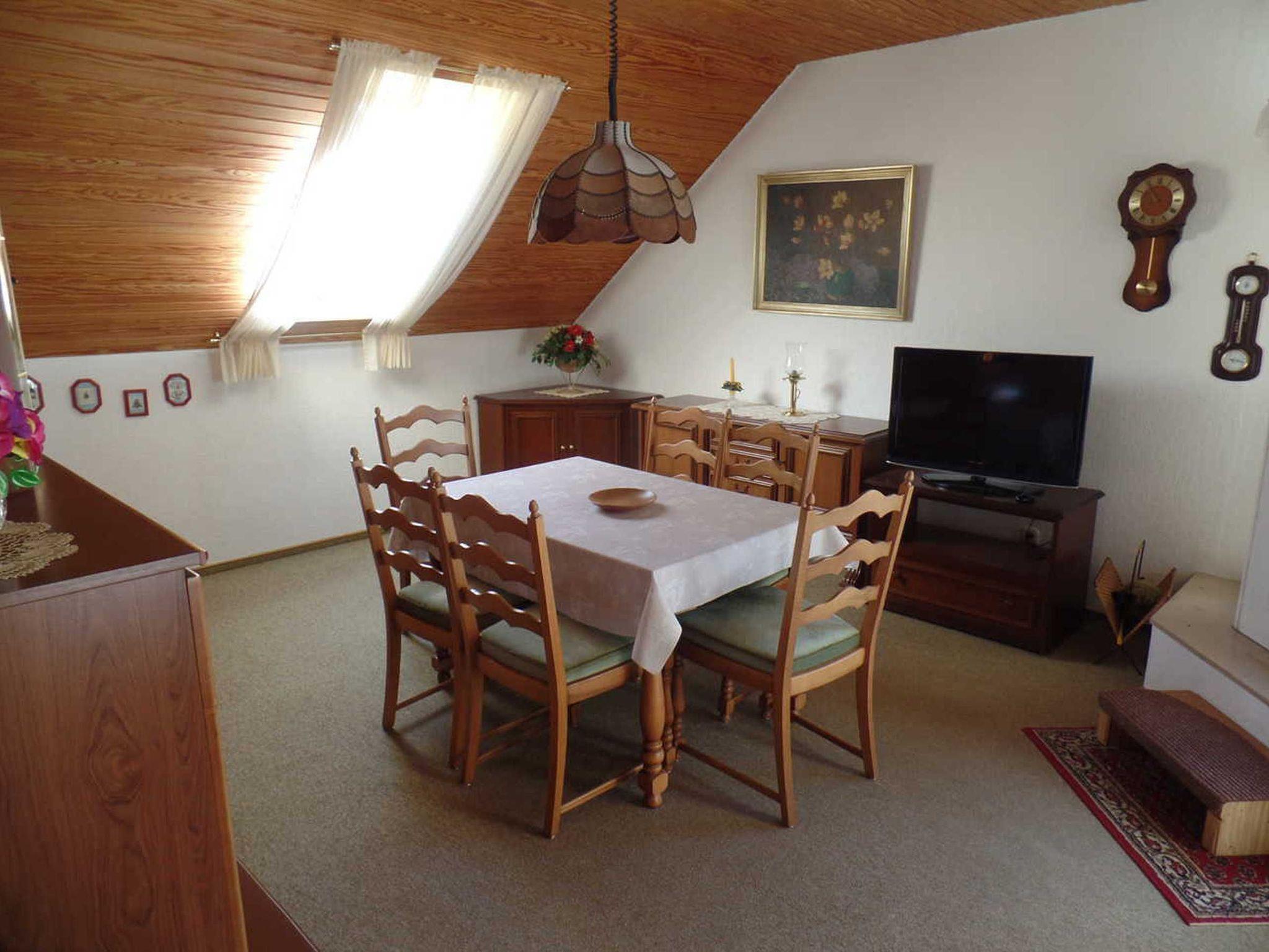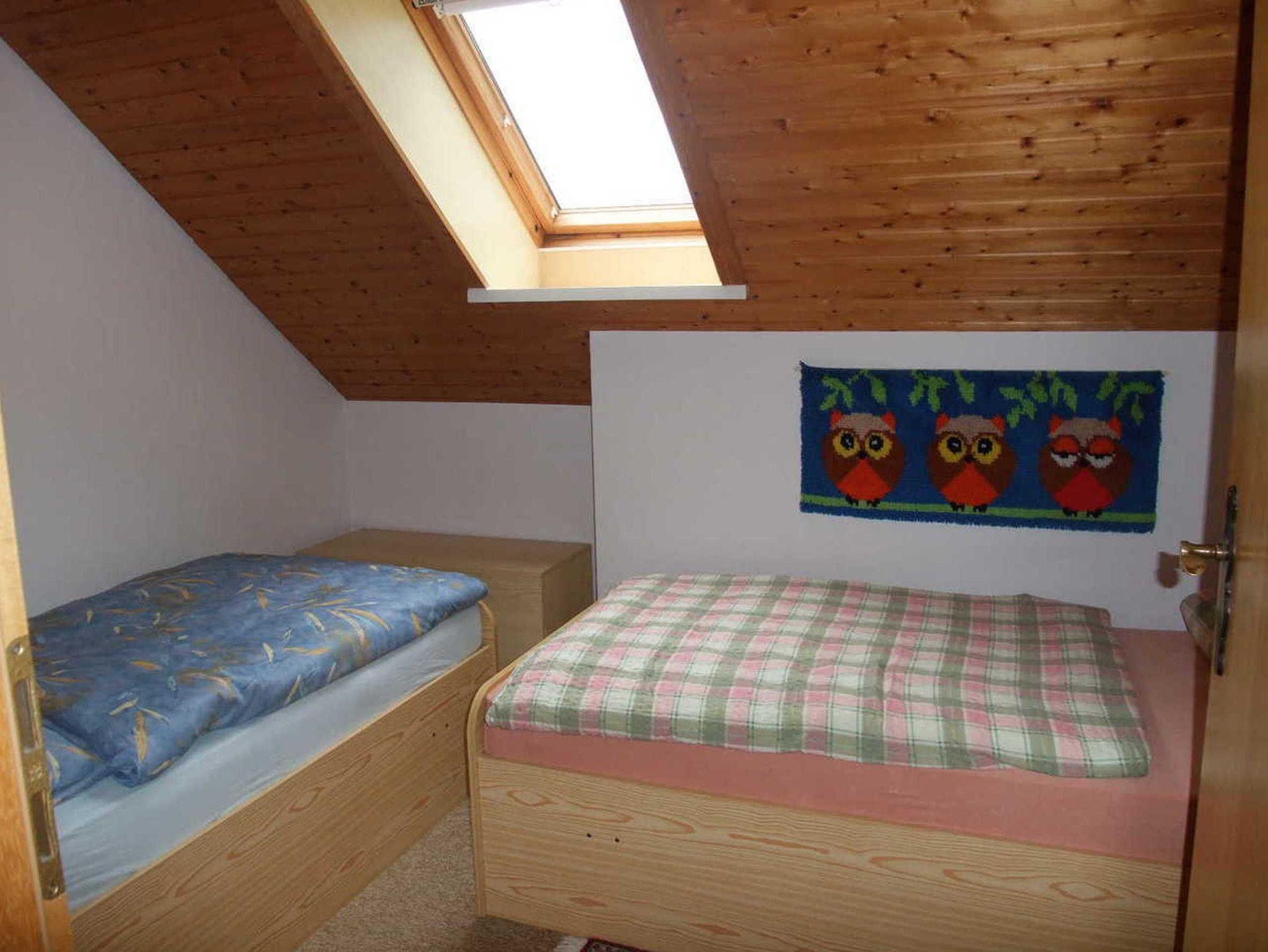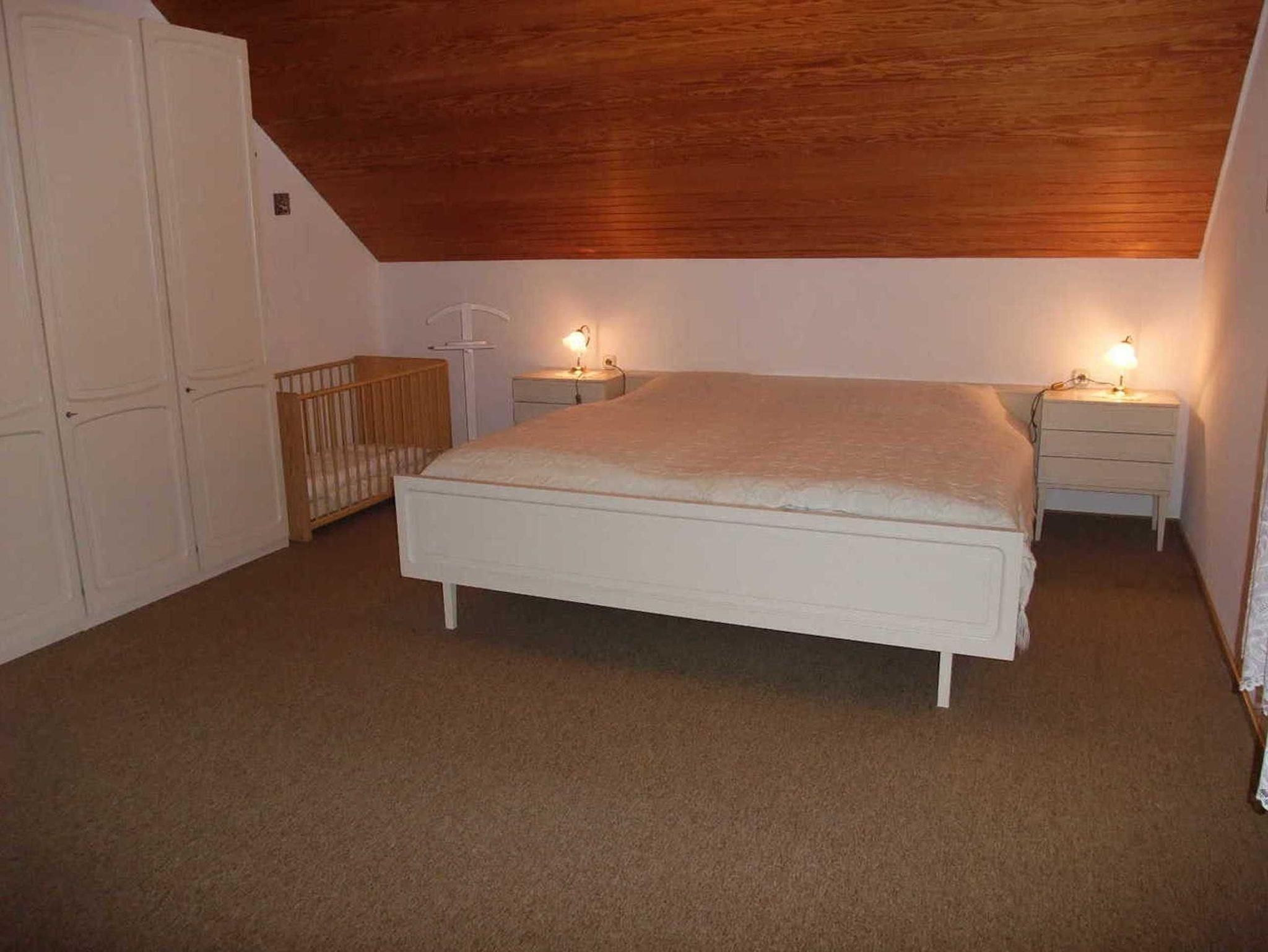 Dieses Urlaubsquartier liegt in der 1. Etage (mit Dachschräge) eines 3 Familienhauses. Im großen Schlafraum mit Doppelbett und Abstellraum steht auch ein Kleinkinderreisebett kostenfrei zur Verfügung. Der zweite Schlafraum ist mit 2 Einzelbetten ausgestattet. Das Duschbad ist hell und neu. Die Küche mit Sitzecke ist komplett ausgestattet. Im geräumigen Wohnraum befinden sich eine Essecke und der Sitzbereich. Vom Wohnraum aus geht es auf die