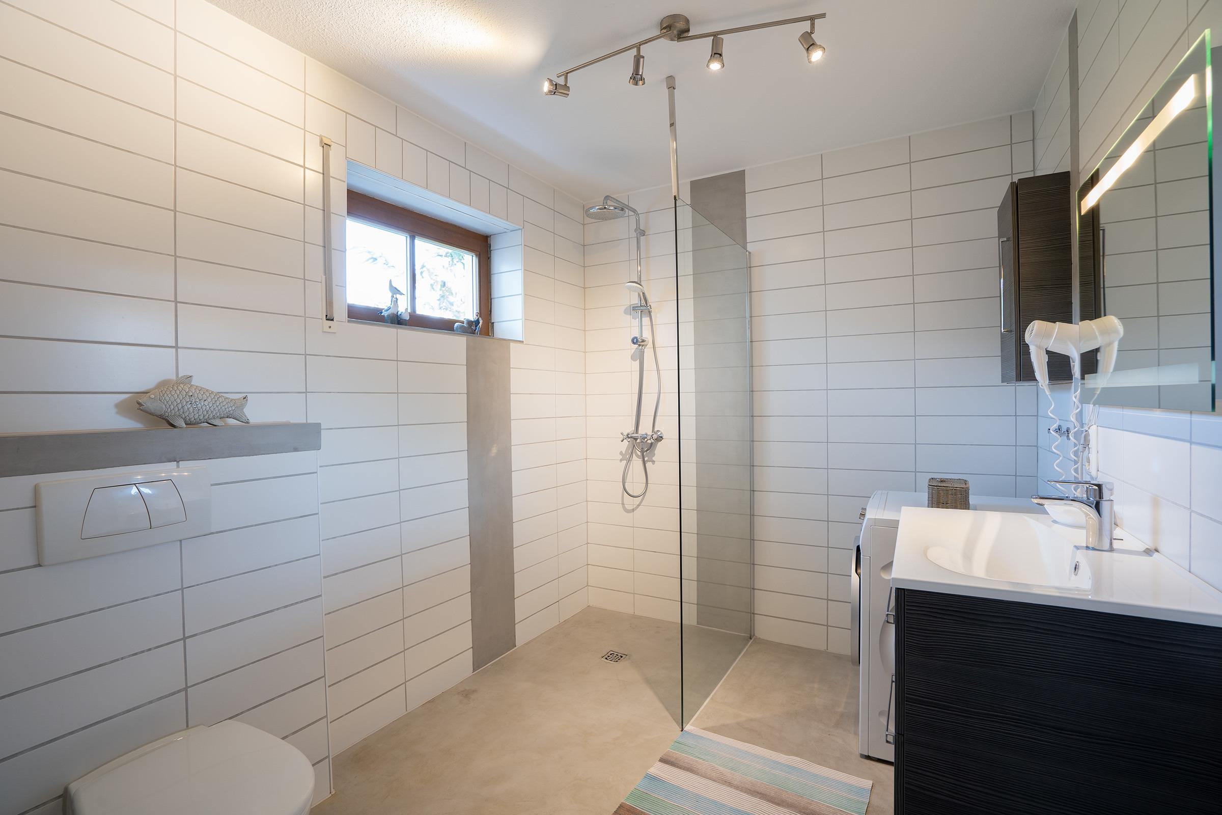 Im Schlafzimmer erwartet Sie ein Doppelbett (1,60 m x 2,00 m) und ein großer Kleiderschrank. Das moderne Bad verfügt über eine bodentiefe Dusche, Handtuchtrockner, Föhn sowie Waschmaschine und Trockner. Bei den Bodenbelägen wurde besonderer Wert auf wohngesunde Materialien und hohe Hygienestandards gelegt.