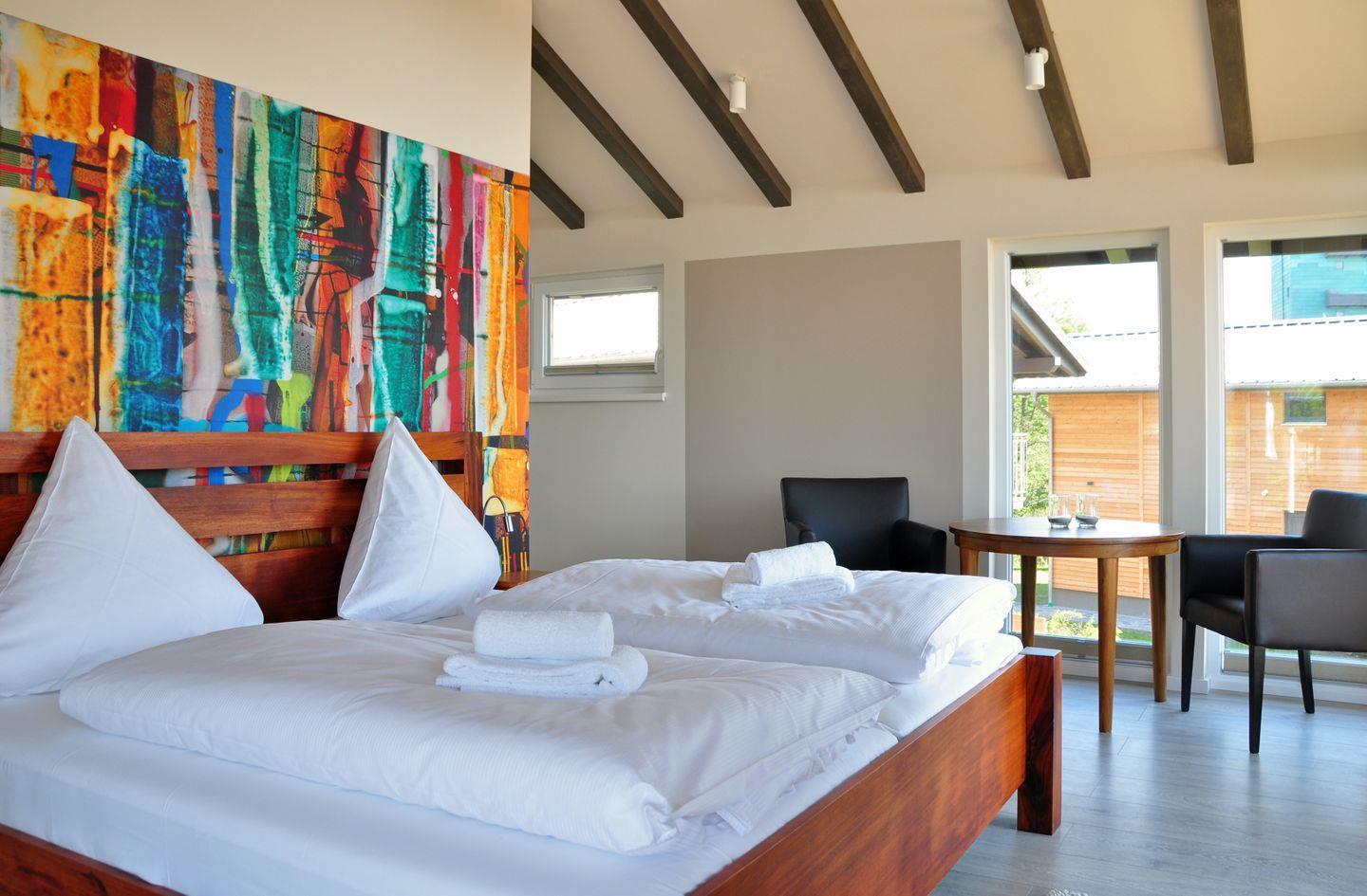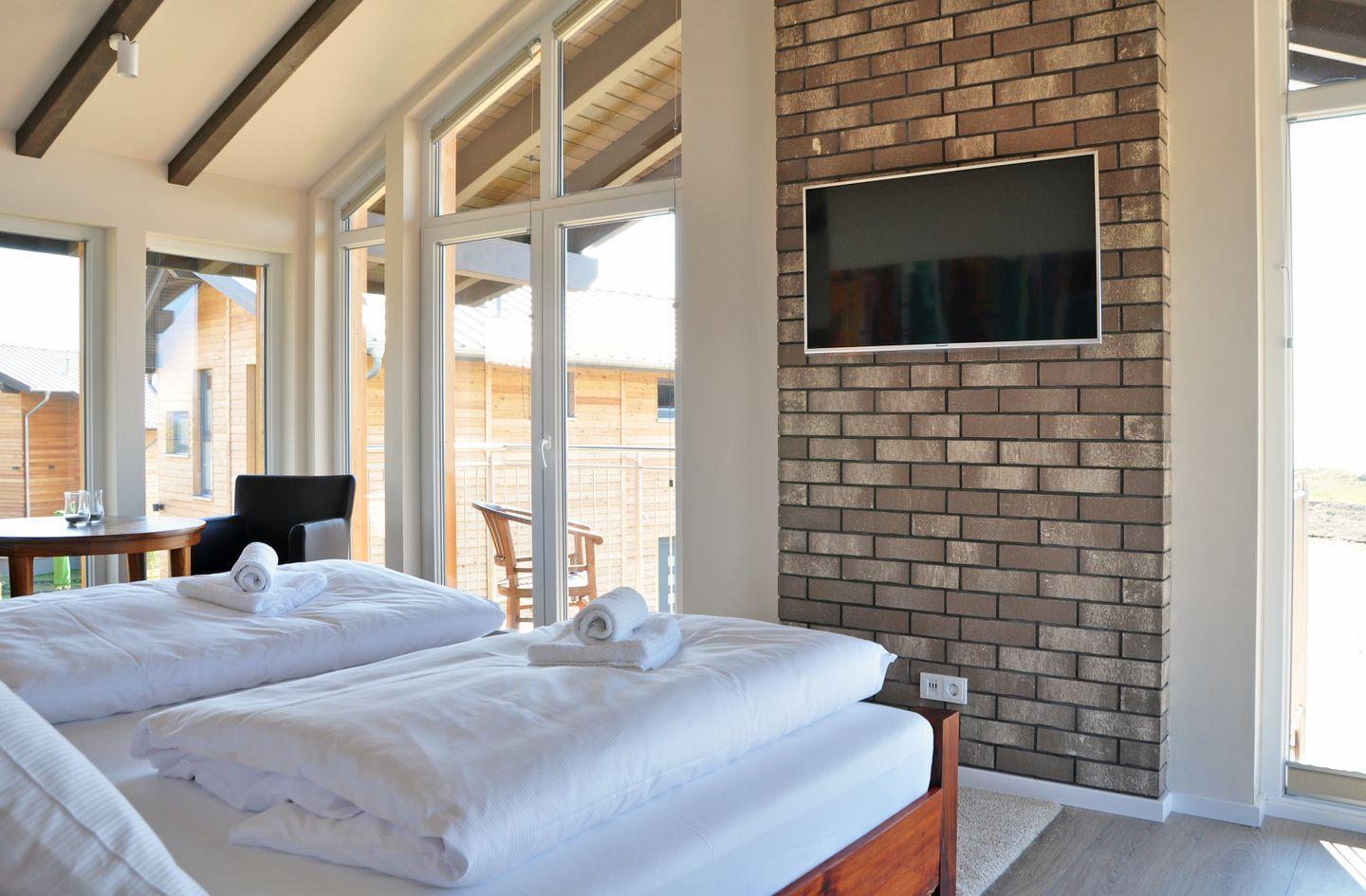 Durch die großzügige Wohnfläche mit Sauna und der Terrasse sowie Balkon, garantieren die Typ B2 Ferienhäuser einen erholsamen Urlaub bei jedem Wetter. Somit sind sie ideal für größere Familien, genau wie für gemeinsam reisende Freunde.