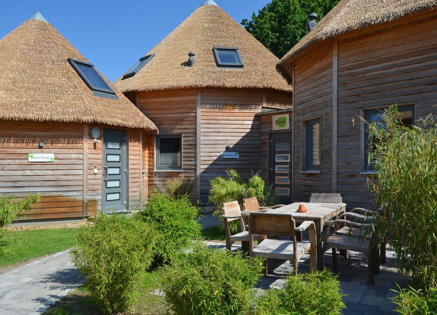 Die charmanten C1-Lodges sind in runder Form gebaut und mit originellen Kunstreetdächern versehen. Mit einer Wohnfläche von jeweils 60 m2 über zwei Ebenen, bietet jede der vier Lodges Platz für bis zu sechs Personen. Sie verfügen im Obergeschoss über ein Schlafzimmer mit Doppelbett, ein Duschbad sowie über eine gemütliche Sofaecke. Im Erdgeschoss befinden sich zwei weitere Schlafzimmer – eines davon mit einem Etagenbett –, ein Duschbad sowie ein separates WC. Das Zentrum bildet die offene Küche mit großem Esstisch – beliebter Treffpunkt zum Austausch und für das gesellige Miteinander! Im Außenbereich genießen Sie auf Ihrer eigenen, mit Bambus eingerahmten Terrassen Ihre Privatsphäre.