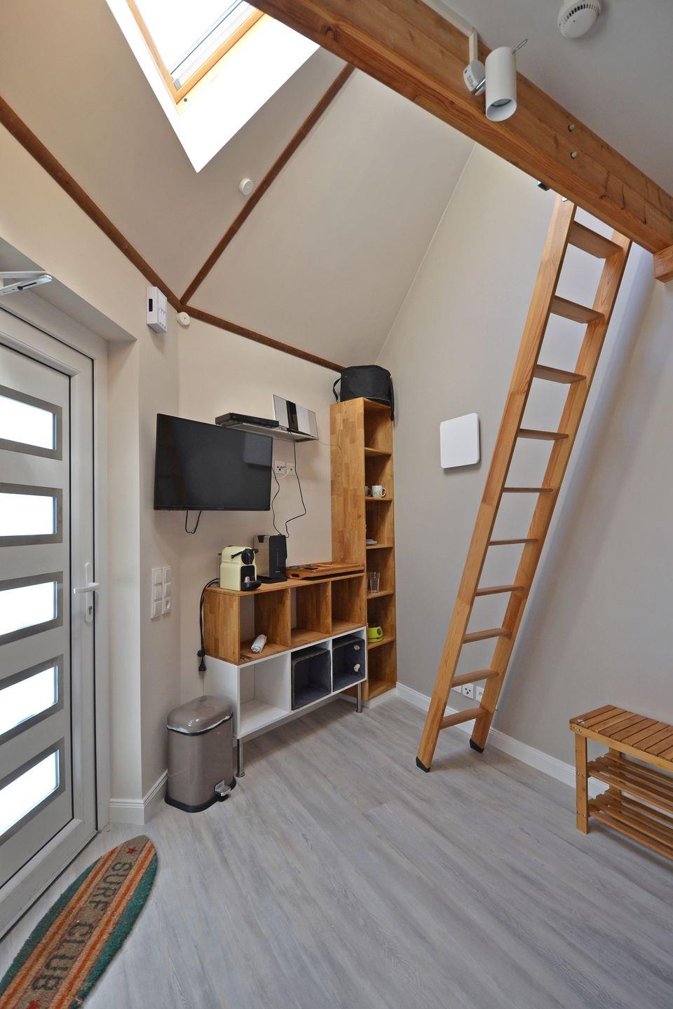 Komfortable Mini-Lodge in Pelzerhaken mit Schlafempore und modernem Duschbad, nur 180 m vom Strand entfernt.