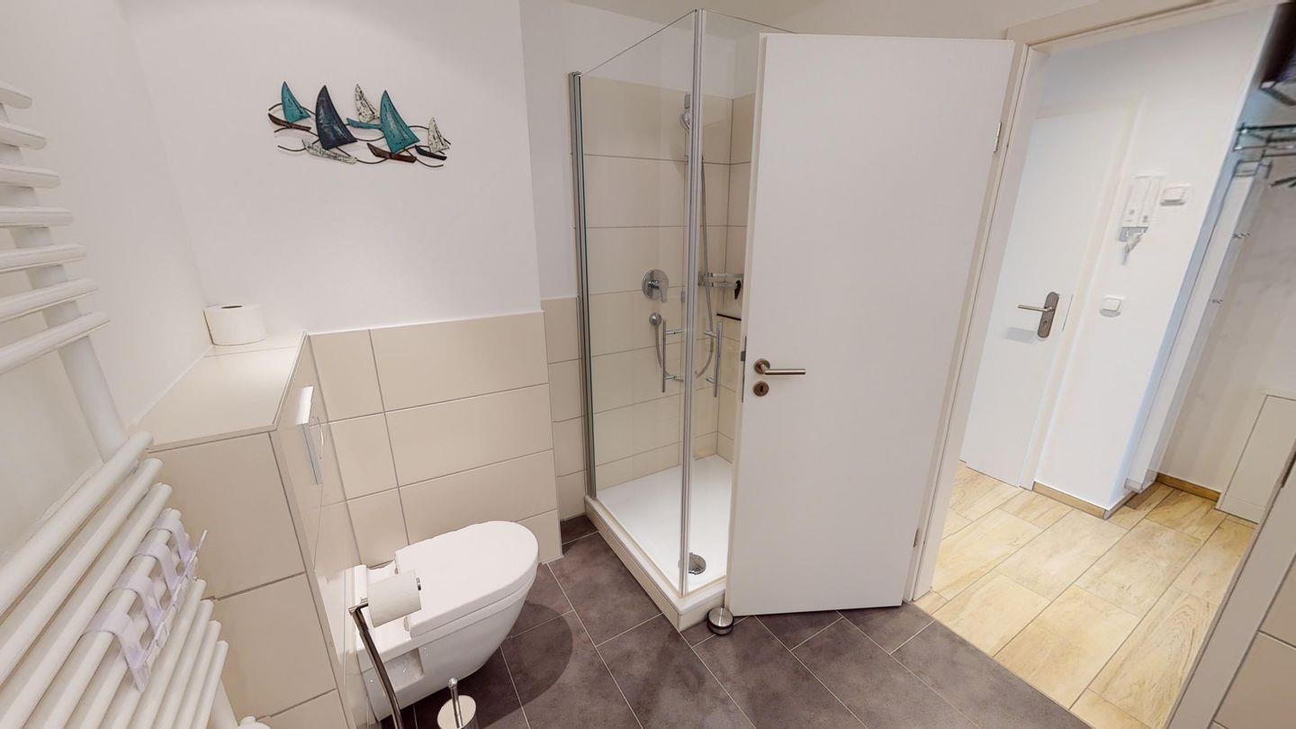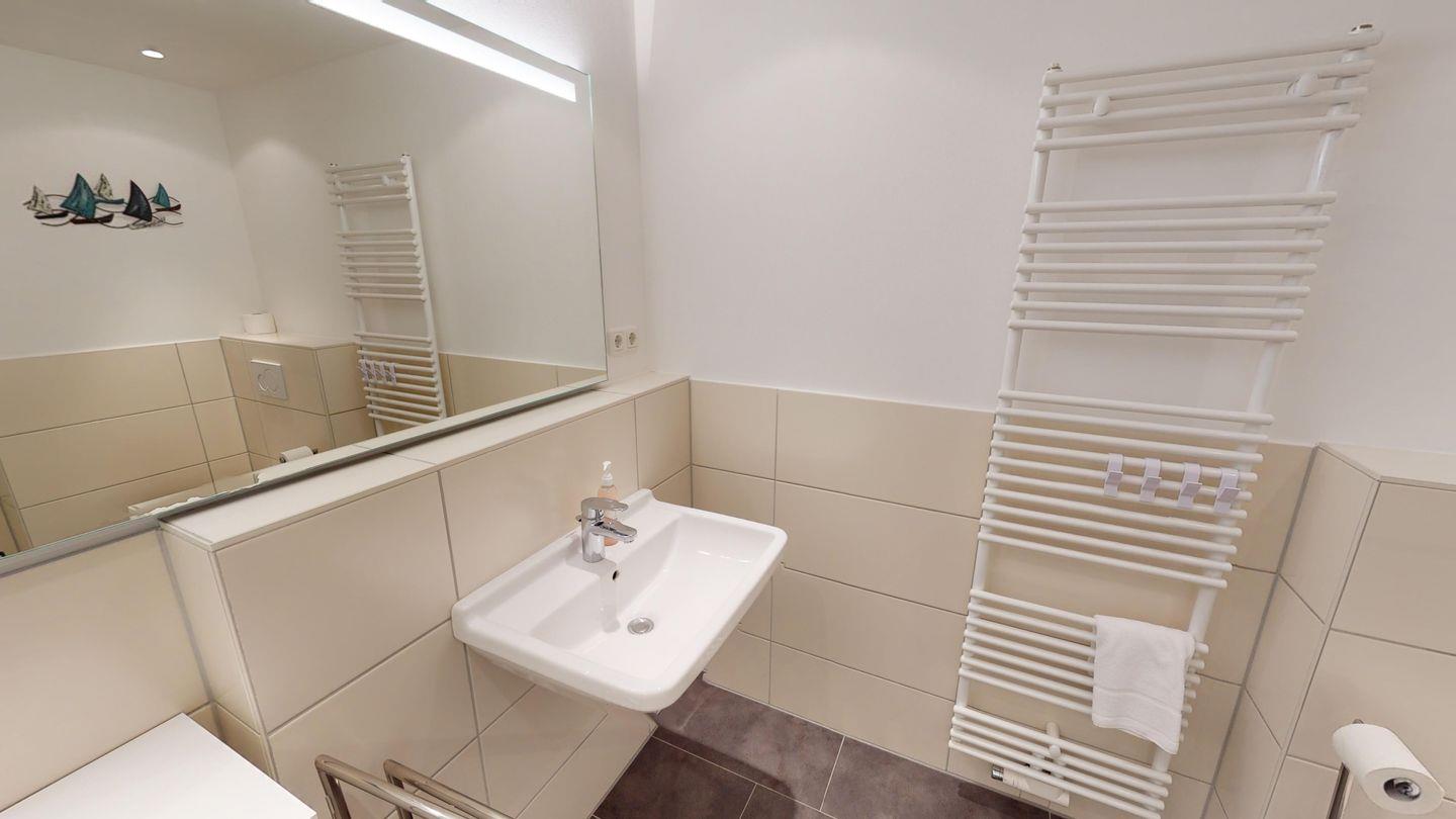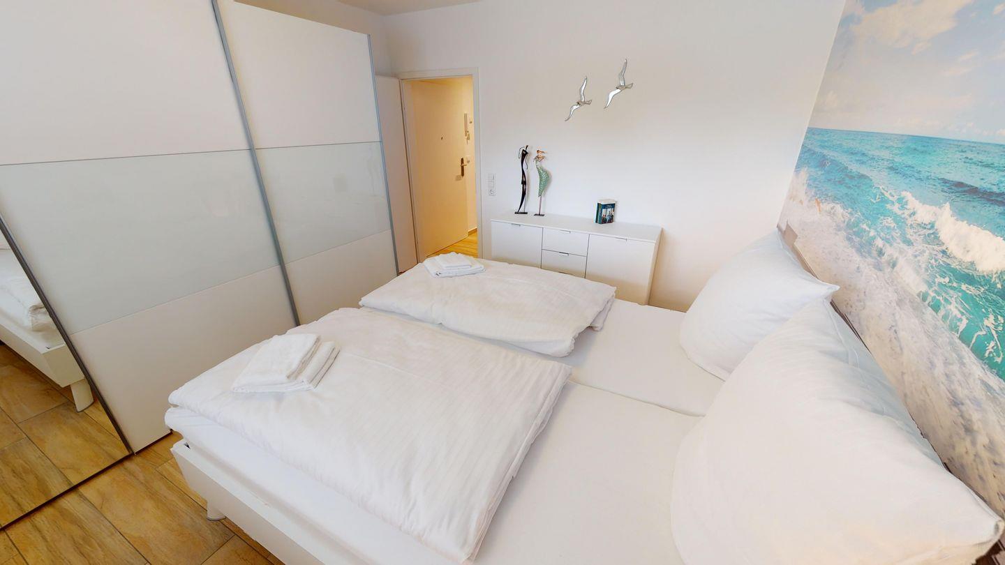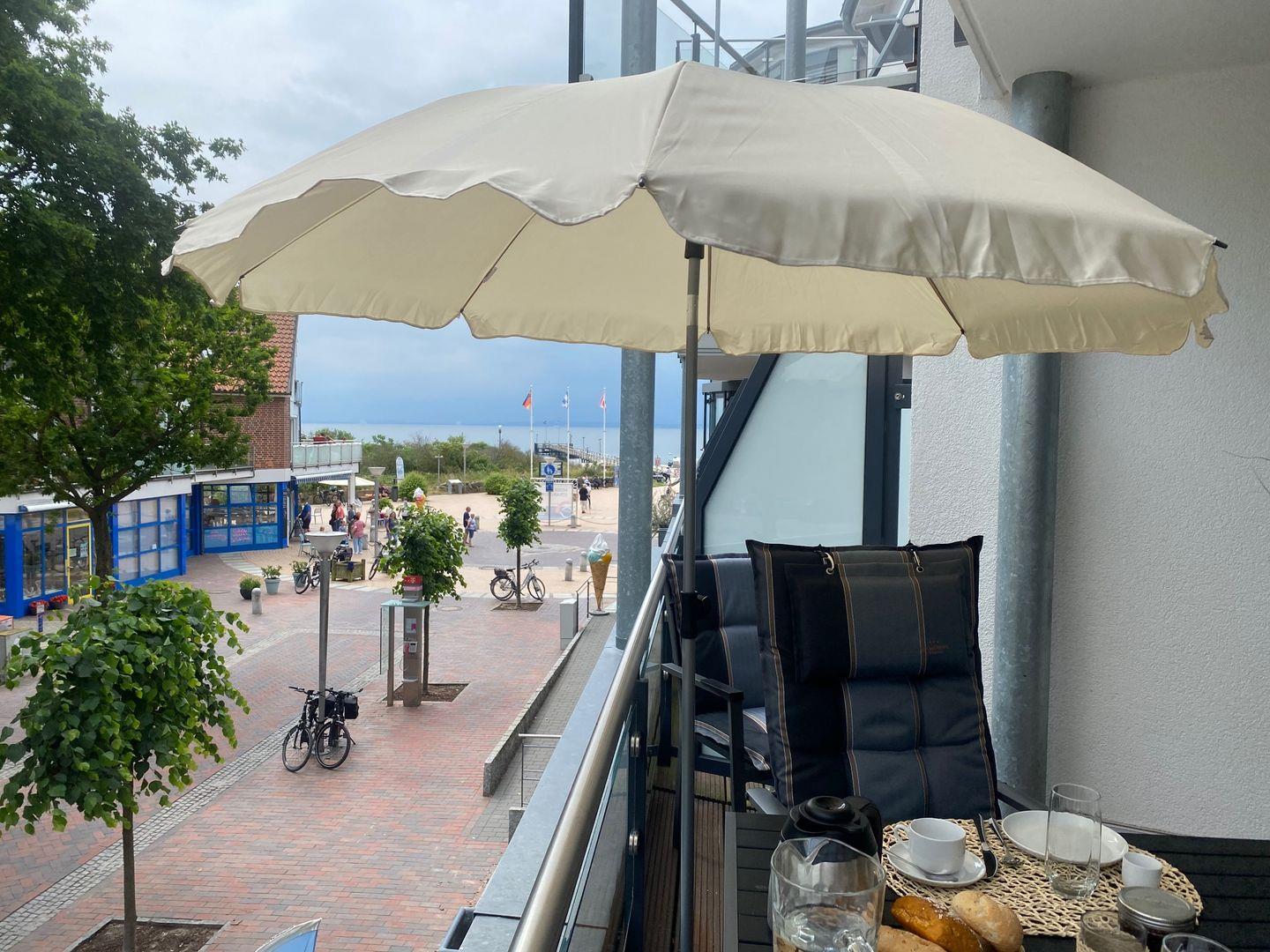 Genießen Sie den seitlichen Meerblick vom Balkon oder nutzen Sie den zweiten großen Balkon mit Fasssauna gegenüber der Wohnungseingangstür. Einen eigenen Fitnessraum finden Sie im Keller!