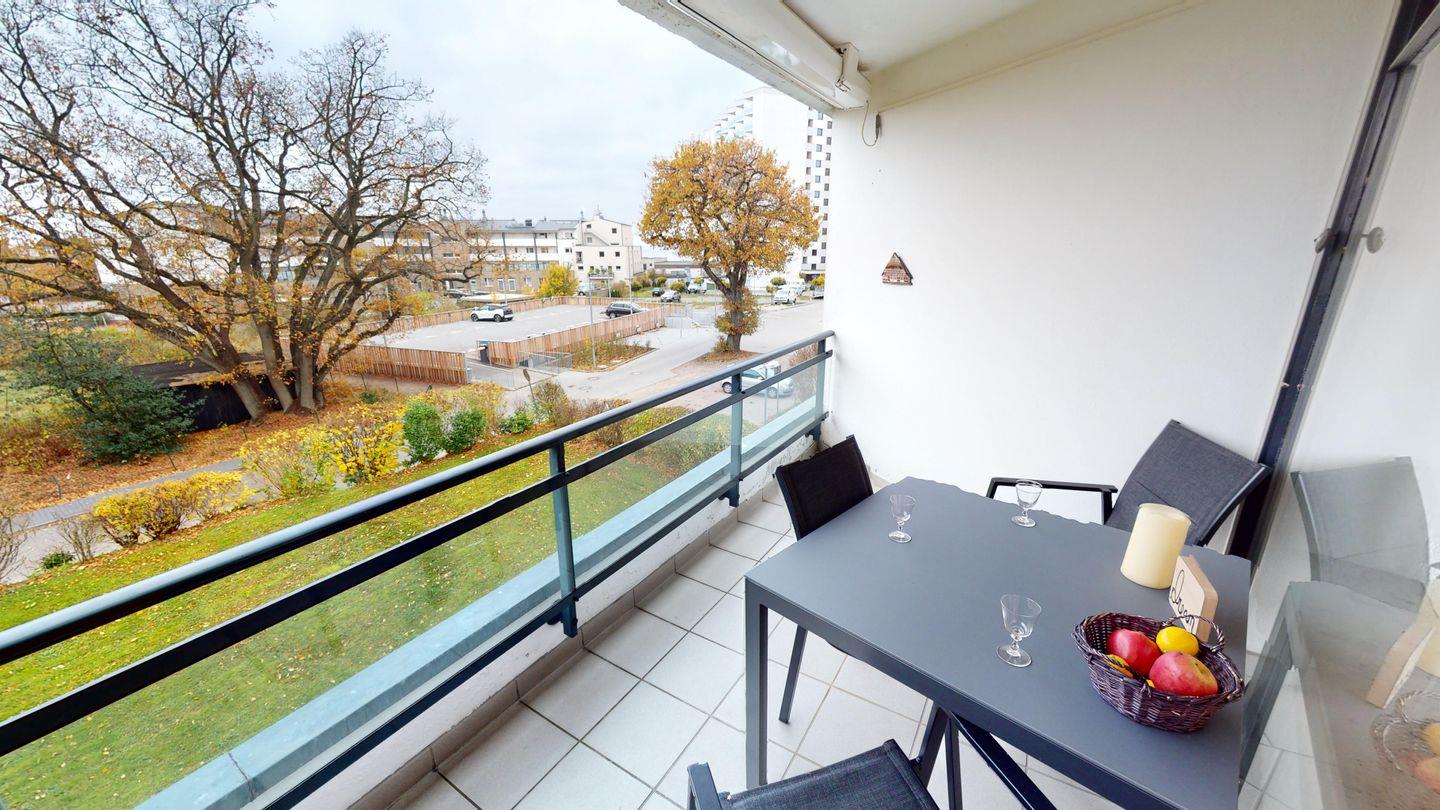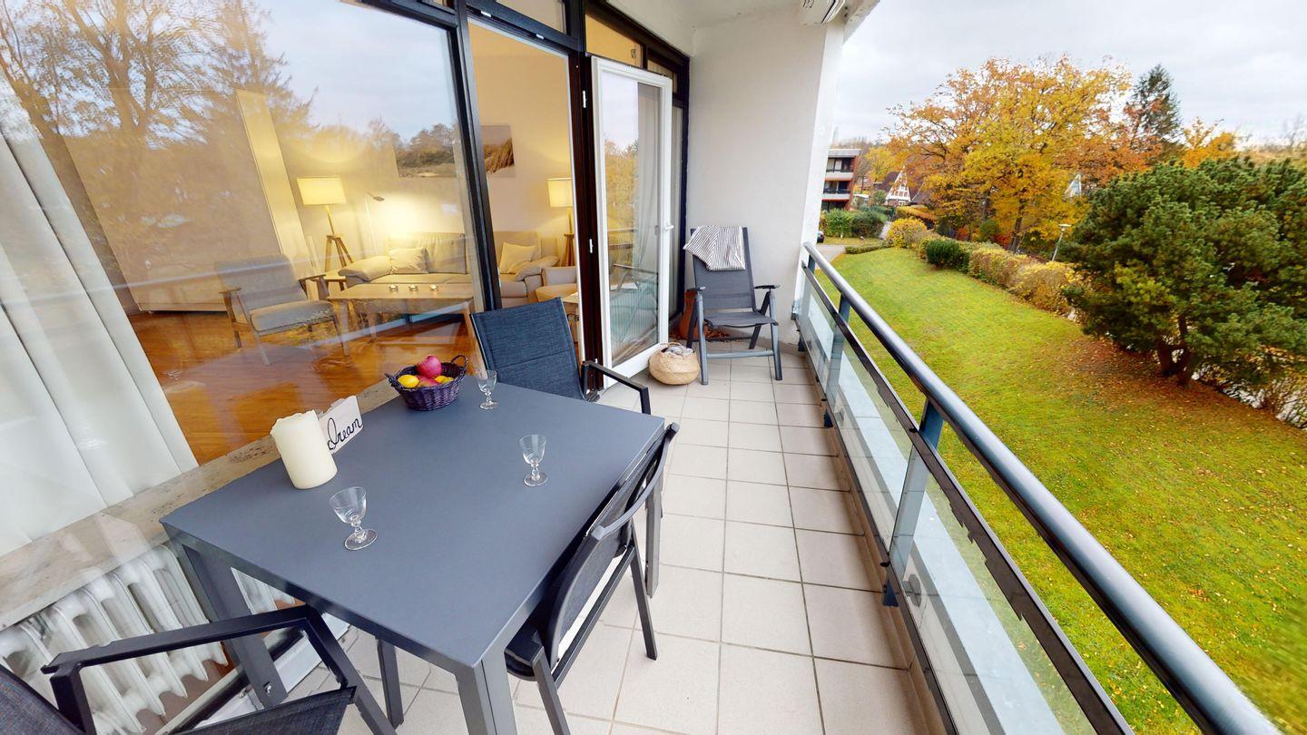 Durch die ruhige Sackgassenlage können Sie Ihren schönen Balkon genießen und sogar ein Stück Ostsee sehen.